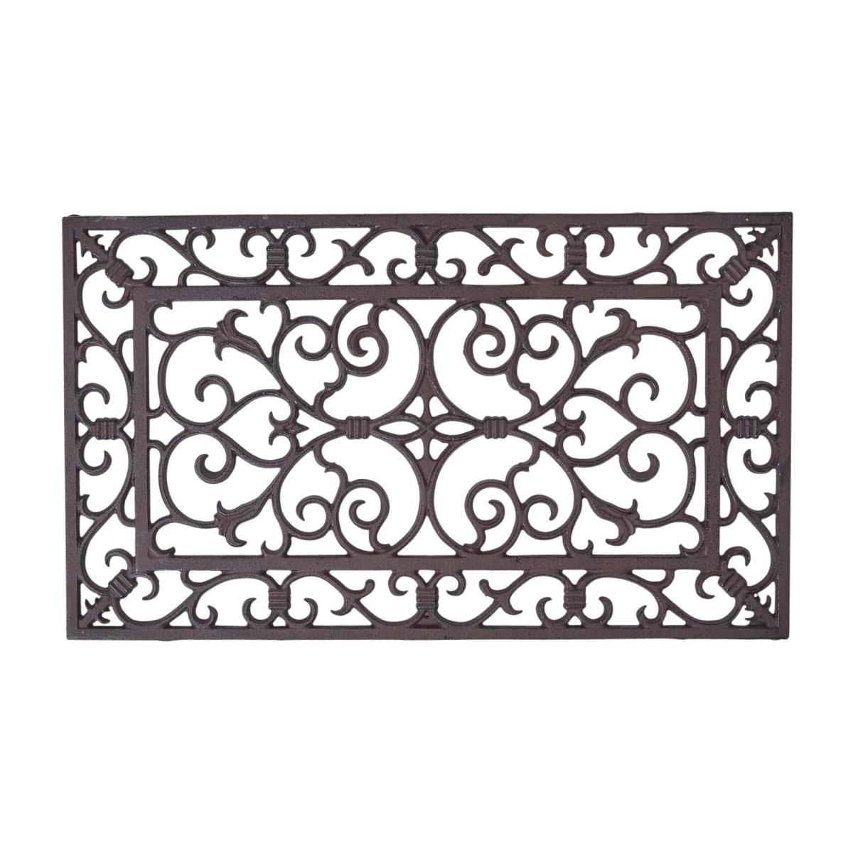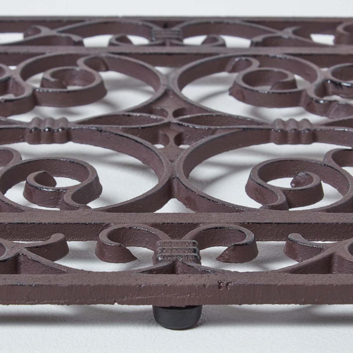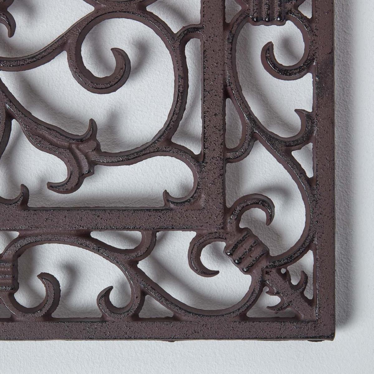 Add style to your home with this rectangular cast iron Victorian style doormat, which will help to remove mud from dirty boots and wellies, keeping your interior clean. This Victorian style door mat that will provide a classic touch to any entrance. This impressive cast iron outdoor mat in a timeless, rustic finish will stop muddy footprints before they get through the door. The textured iron structure means that the mat can be used similarly to a grate, catching mud from shoes while still on the lawn. The mat measures 58cm x 34 cm. Part of Homescapes range of stylish accessories for the home and garden.