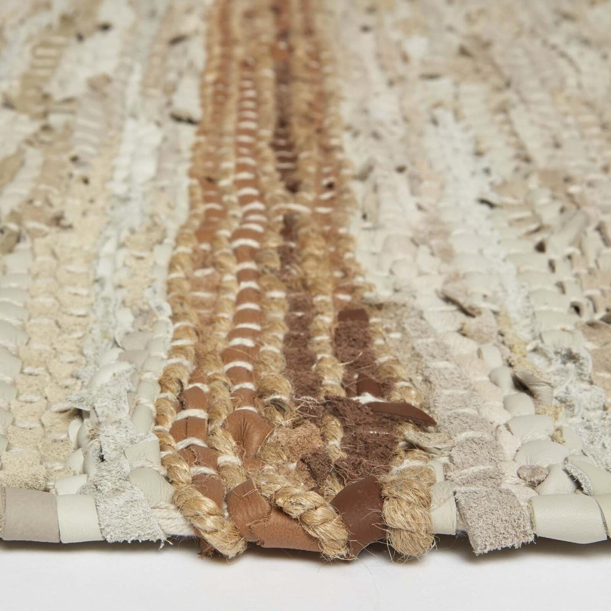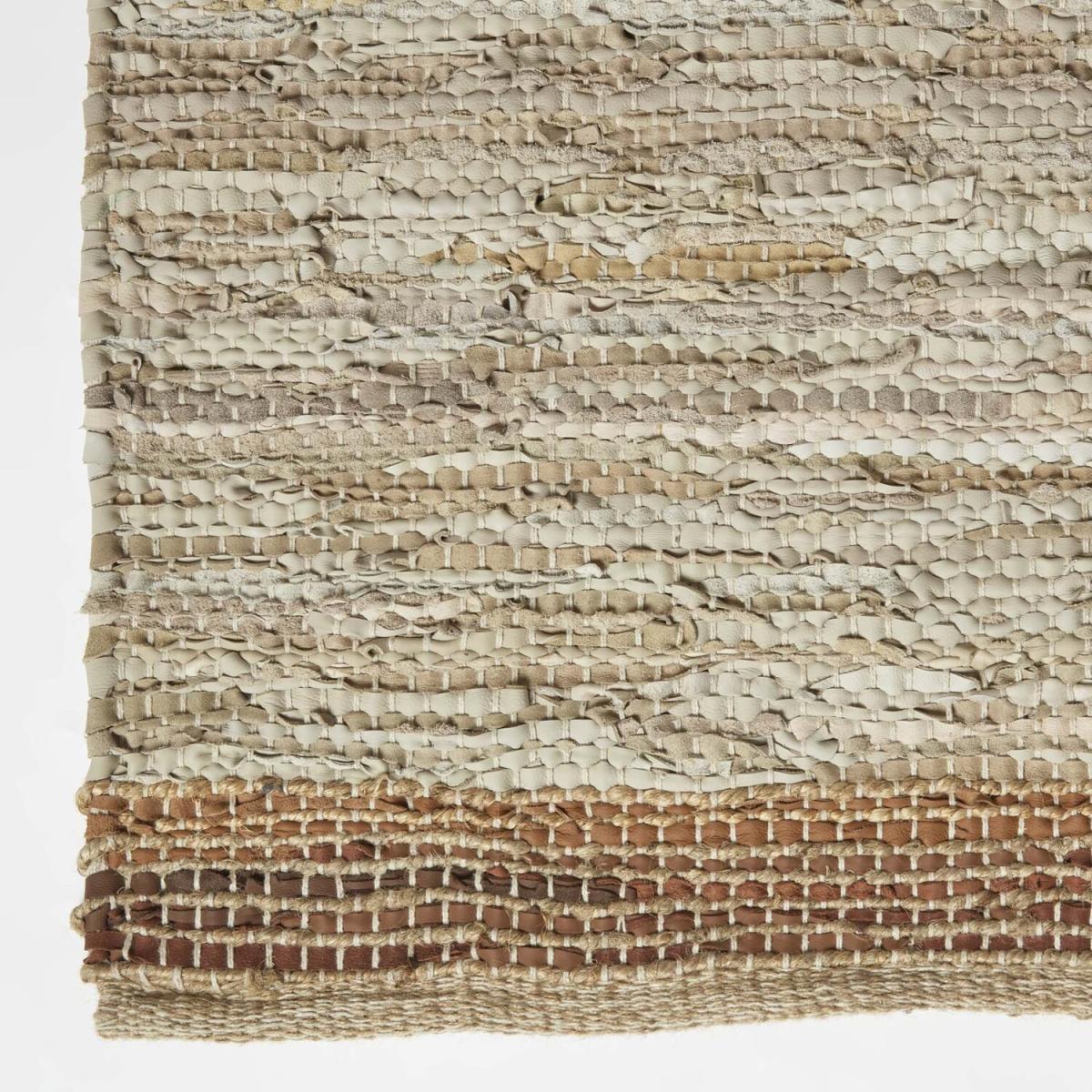 Decorative leather rugs from Homescapes exclusive rug collection. A striped home accessory, woven from eco-friendly recycled leather, the patterned rug is available in a range of sizes and two colours. A durable floor accessory that will complement many dcor colours and interior styles, each neutral leather rug is ideal for heavy footfall areas such as living rooms, kitchens and hallways. Each rug is lovingly handcut from recycled leather, which has been collected as a by product of the food industry and finished with a jute-cotton yarn blend. The traditional stripe pattern adds a subtle yet decorative feel to the space, and can be complemented with the Homescapes collection of striped home accessories. Part of Homescapes leather range, all rugs are available in five different sizes 60 x 90 cm, 66 x 200 cm, 90 x 150 cm, 120 x 170 cm and 160 x 230 cm. Spot clean only. Available in grey and brown.