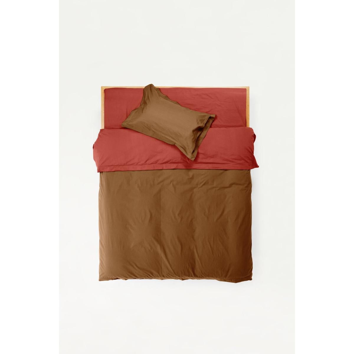 This BI-COLOUR pillow features 'Carob' on one side and 'Ochre Red' on the other. Flip for a new colour story. Long staple cotton fibres give this strong weave a gentle hand-feel that softens with use.  300 thread count percale weave. Made using GOTS and Fairtrade Certified Cotton.  Sold as a pair.