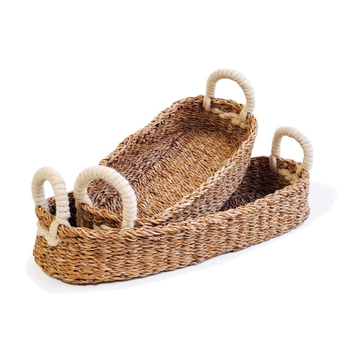 Brown Savar Bread Basket With White Handle - Set Of 2 Korissa