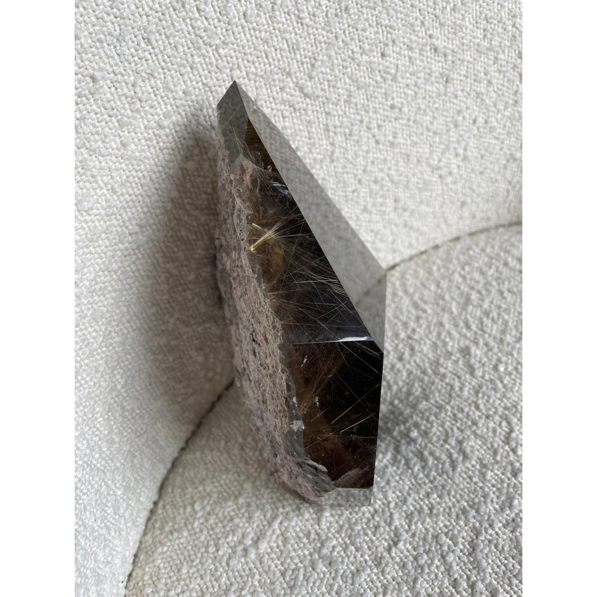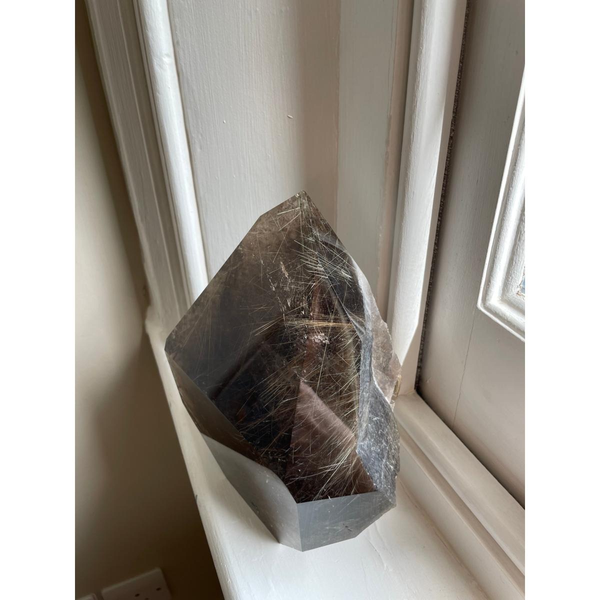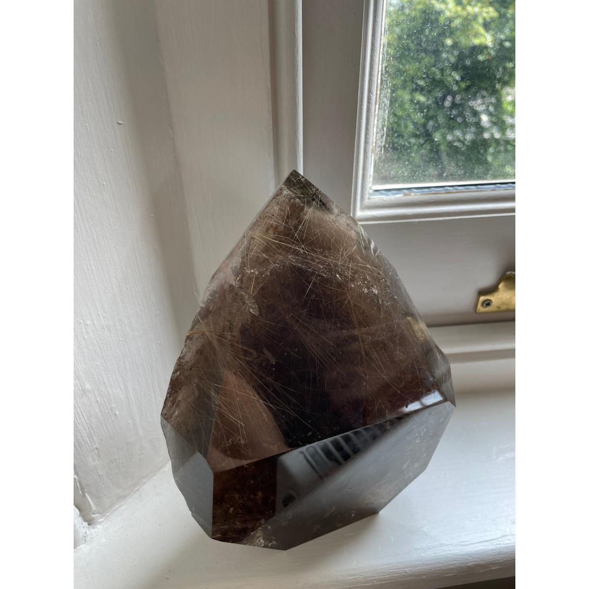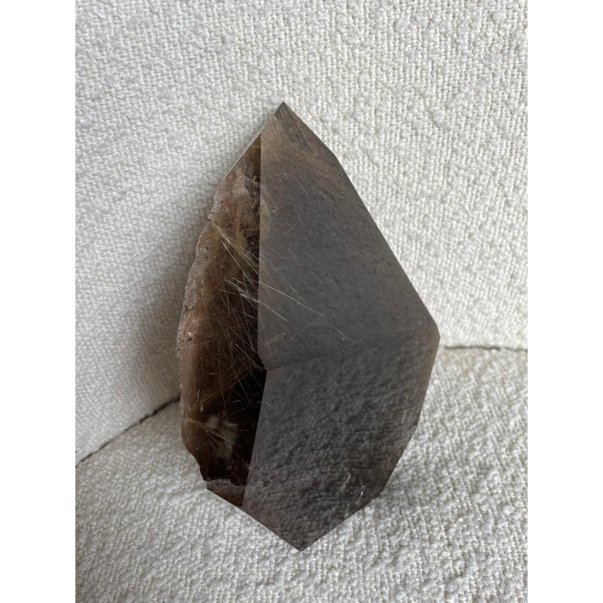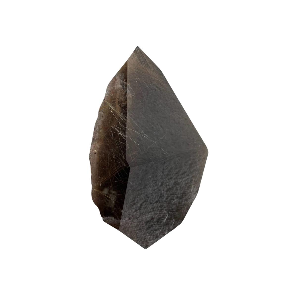 Smoky Quartz is a powerful grounding and anchoring stone that reduces anxiety and other negative emotions while balancing and restoring the body's energy. It gently neutralises negative vibrations and is detoxifying on all levels especially with protecting against radiation and electromagnetic smog. Smoky Quartz can relieve cramps and pains in the body particularly of the abdomen, legs and hips. it can reduce nerve and muscle pain while strengthening the body. Rutilated Quartz heightens the energetic impulse of this Smoky Quartz and is a very effective vibrational healer. It is helpful to aid in chronic conditions and infertility. It is excellent for exhaustion and energy depletion.