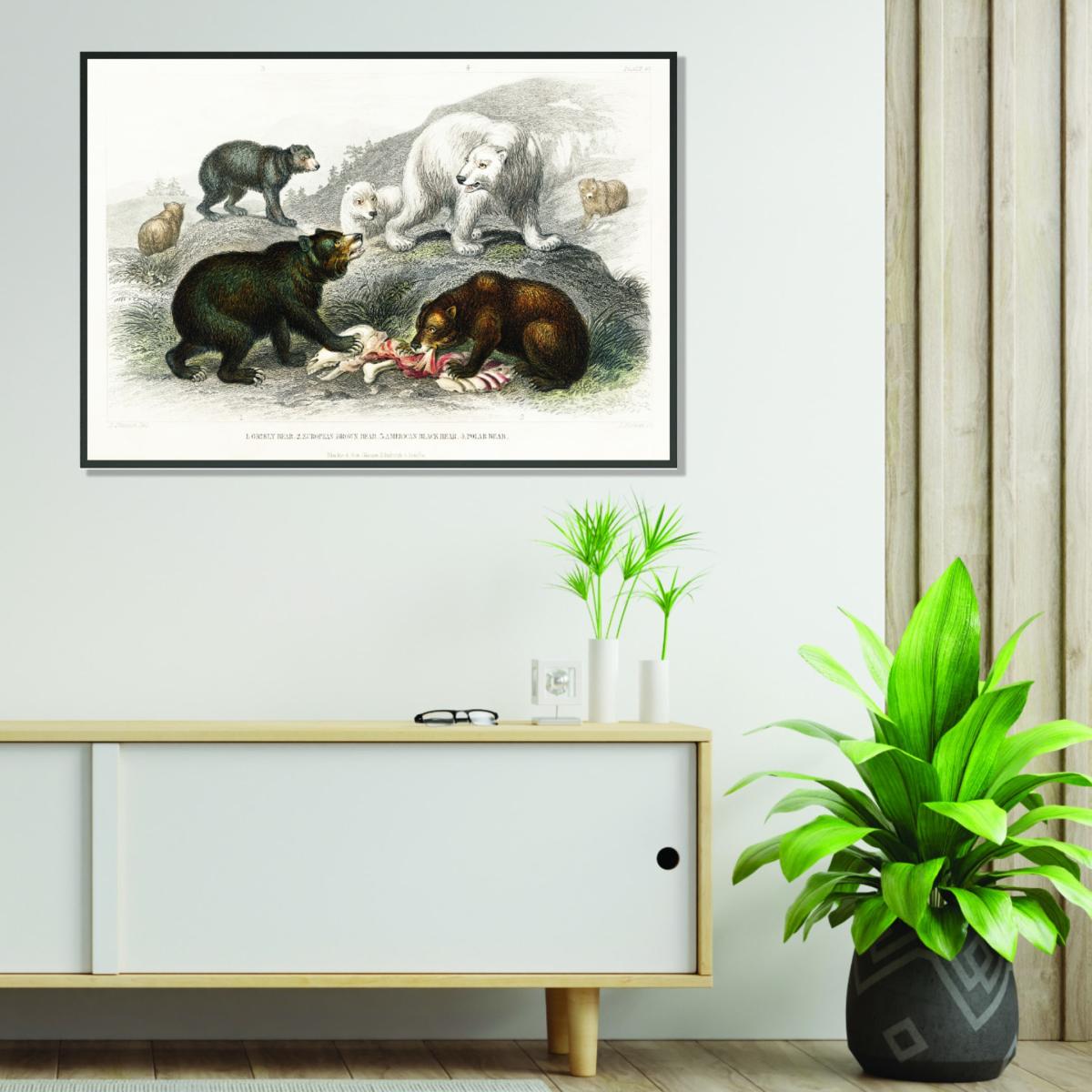 This print of the brown bears makes a charming statement piece, ideal for adding a touch of nature-inspired character to a variety of interiors. I love how it works well in neutral or earthy-toned spaces, such as country cottages or modern rustic settings, where it can complement wooden furniture or cosy textiles. Practical styling tips include placing it above a sofa or as a focal point in a gallery wall to bring a sense of story and warmth. Its size makes it versatile, so it can hold its own in a larger living area or add visual interest in a smaller space, especially when paired with complementary accessories like botanical prints or vintage accents.