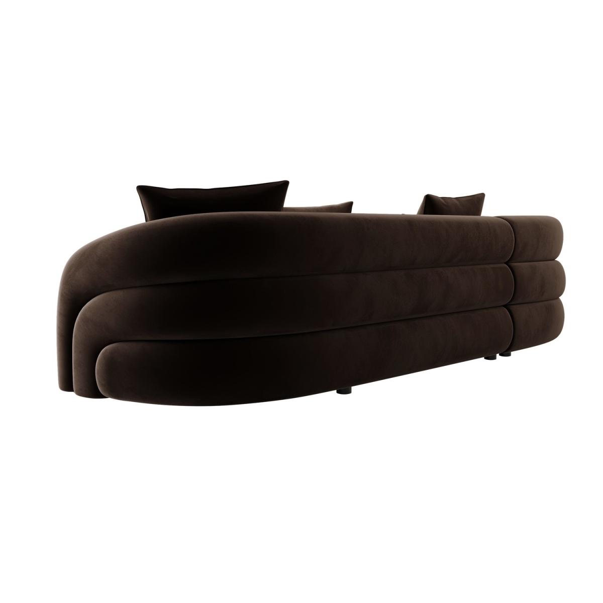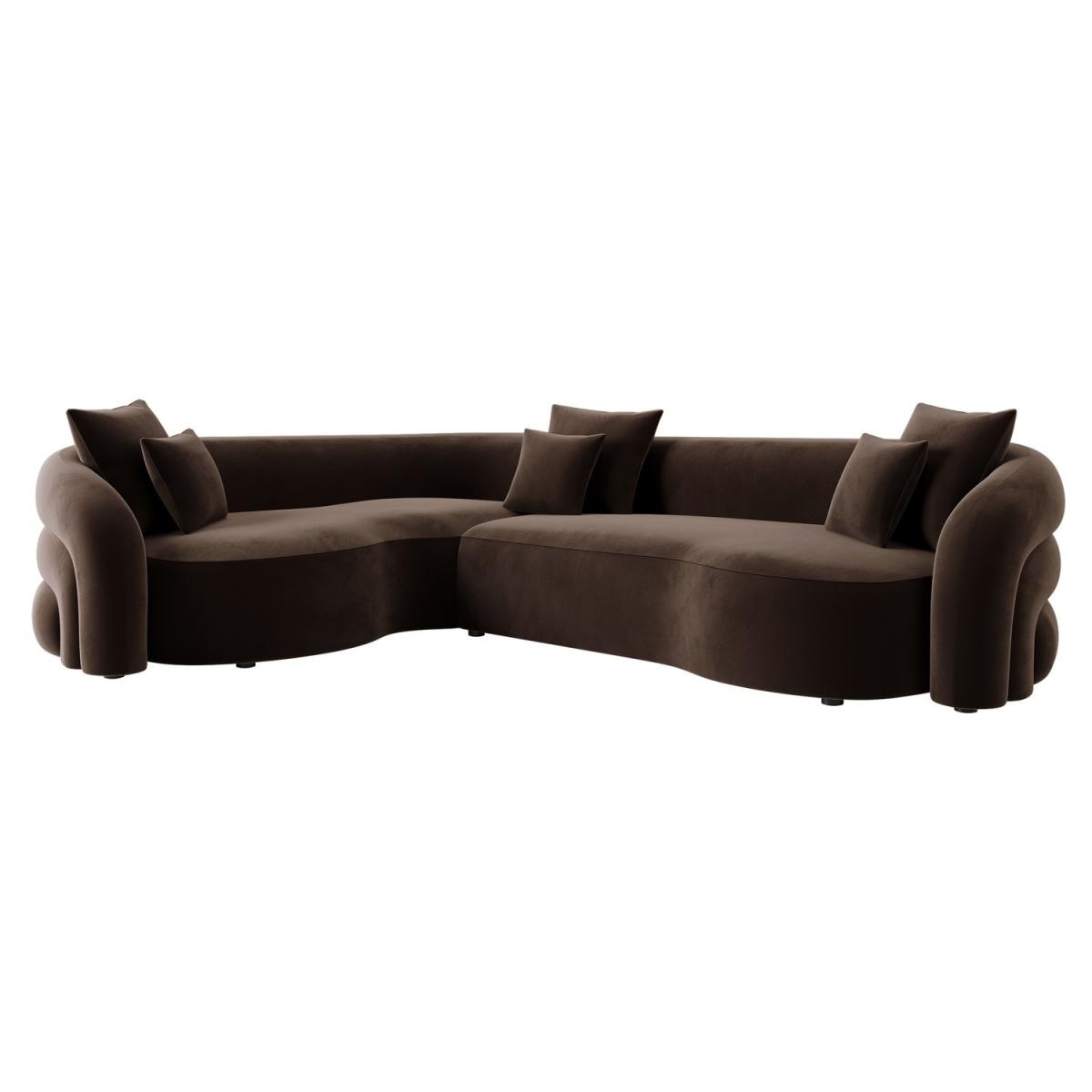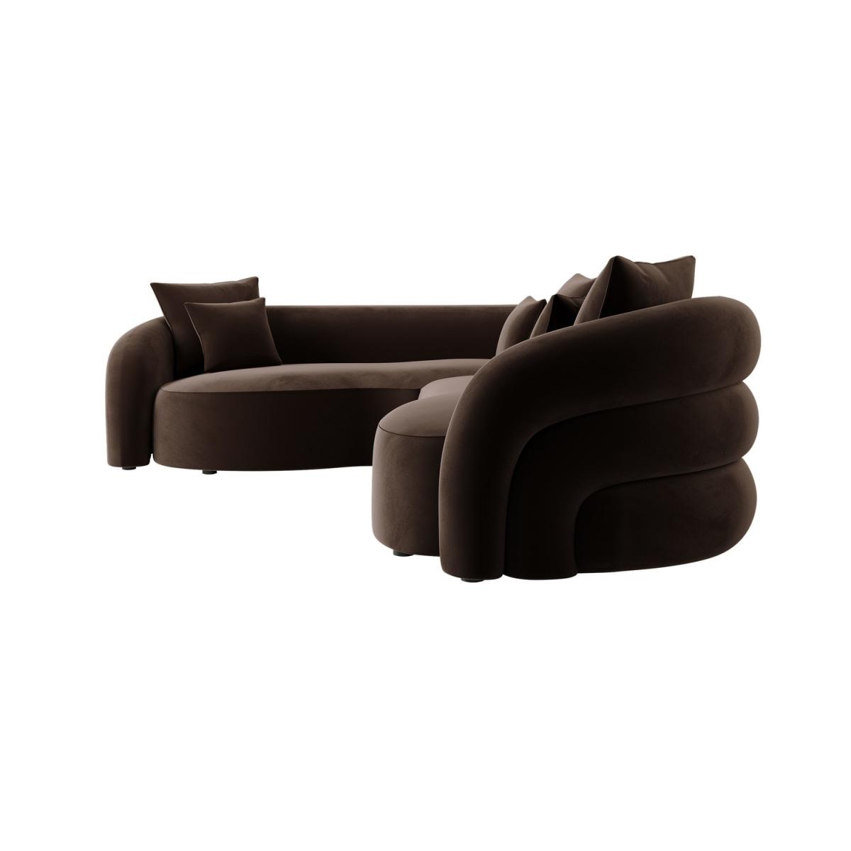Foam filled Scatter Cushions Included Luxurious chocolate brown velvet fabric, offering both comfort and style. The soft-to-the-touch velvet upholstery provides a cosy, sophisticated feel, making it the perfect statement piece for any modern home. Adds a modern and contemporary touch to any living space. Comfortable seating for up to four people, ideal for family use or entertaining guests. Comes with three big cushions and three small cushions for added comfort and style, perfectly complementing the sofa's stylish design. Built with a strong frame for longevity, ensuring this sofa stands up to daily use. Avoid direct sunlight to prevent fading, and gently vacuum or brush to keep the velvet clean and dust-free. The Zuri 4-seater Curved Corner Sofa combines style and comfort with its inviting curves and layered cushioning, creating a cosy and classy feel in any room. Perfect for corners, this beautiful sofa is made with soft chocolate brown velvet fabric and comes with six matching scatter cushions for added comfort. Its modern curved shape brings a fresh, contemporary look, making it perfect for relaxed lounging and the ideal centrepiece for both stylish and welcoming living spaces.