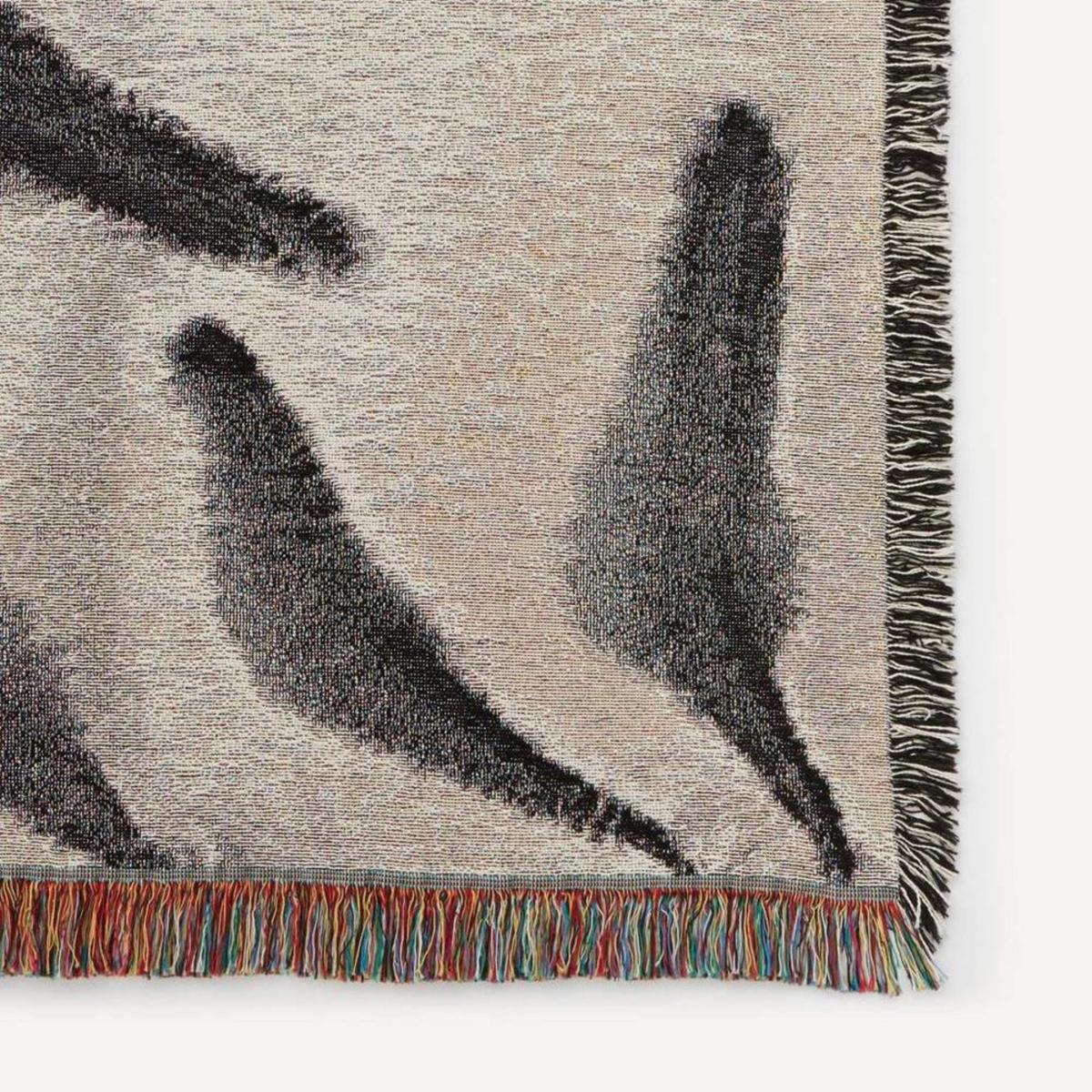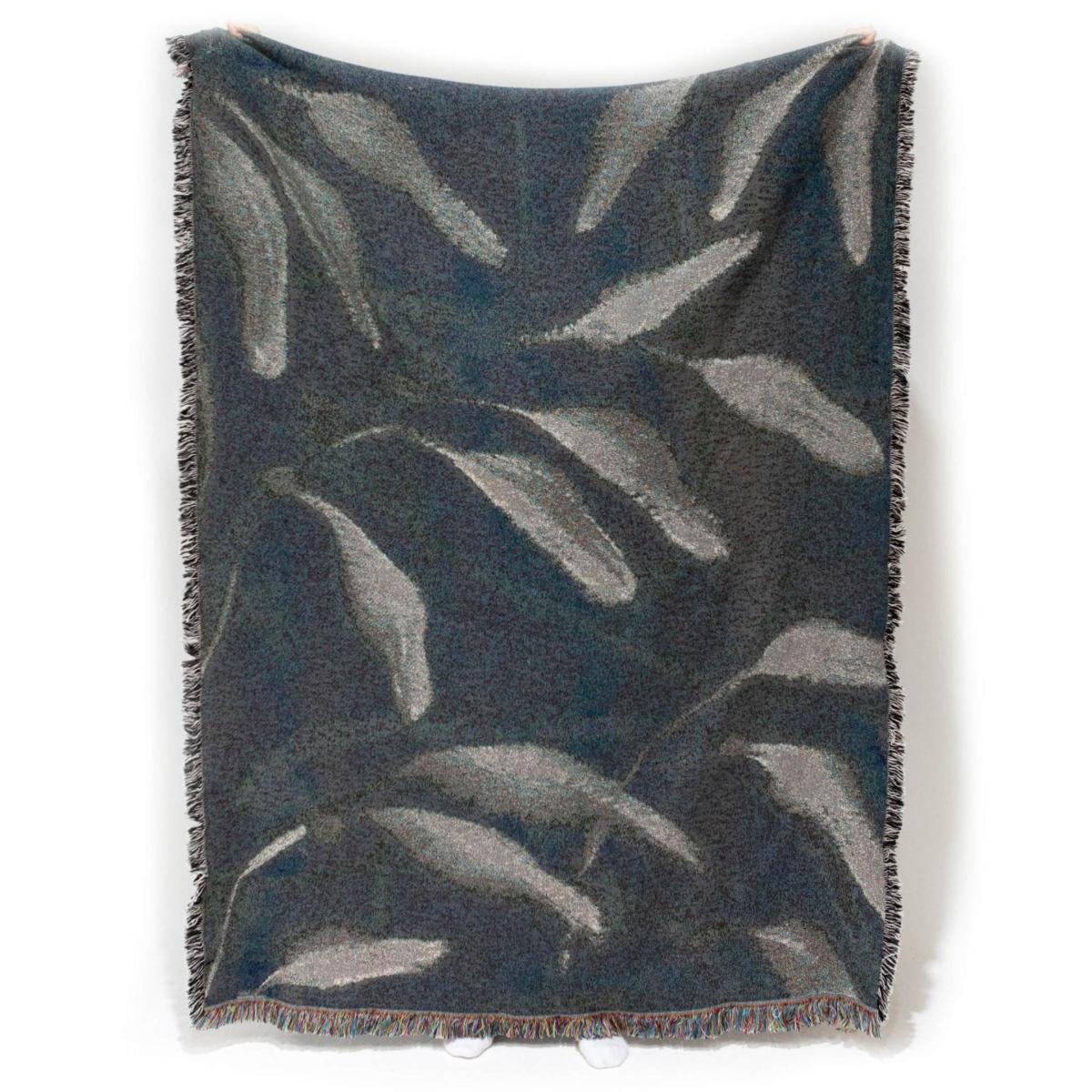 Designer Rosanna Corfe paints and designs all of her products in her London home studio and now Rosanna's ink painting 'Amongst the Branches' has been wonderfully translated into this unique recycled cotton woven blanket with gorgeous fringe edging. The 'Amongst' tapestry throw features a charcoal grey and beige cream print front, perfect if you’re looking for a more neutral colour option whilst also featuring a contrasting deep teal blue and ivory patterned back, making this Jacquard throw double sided and reversible. Use on your sofa, bed, or even hang on your wall as a large, statement, wall hanging artwork.