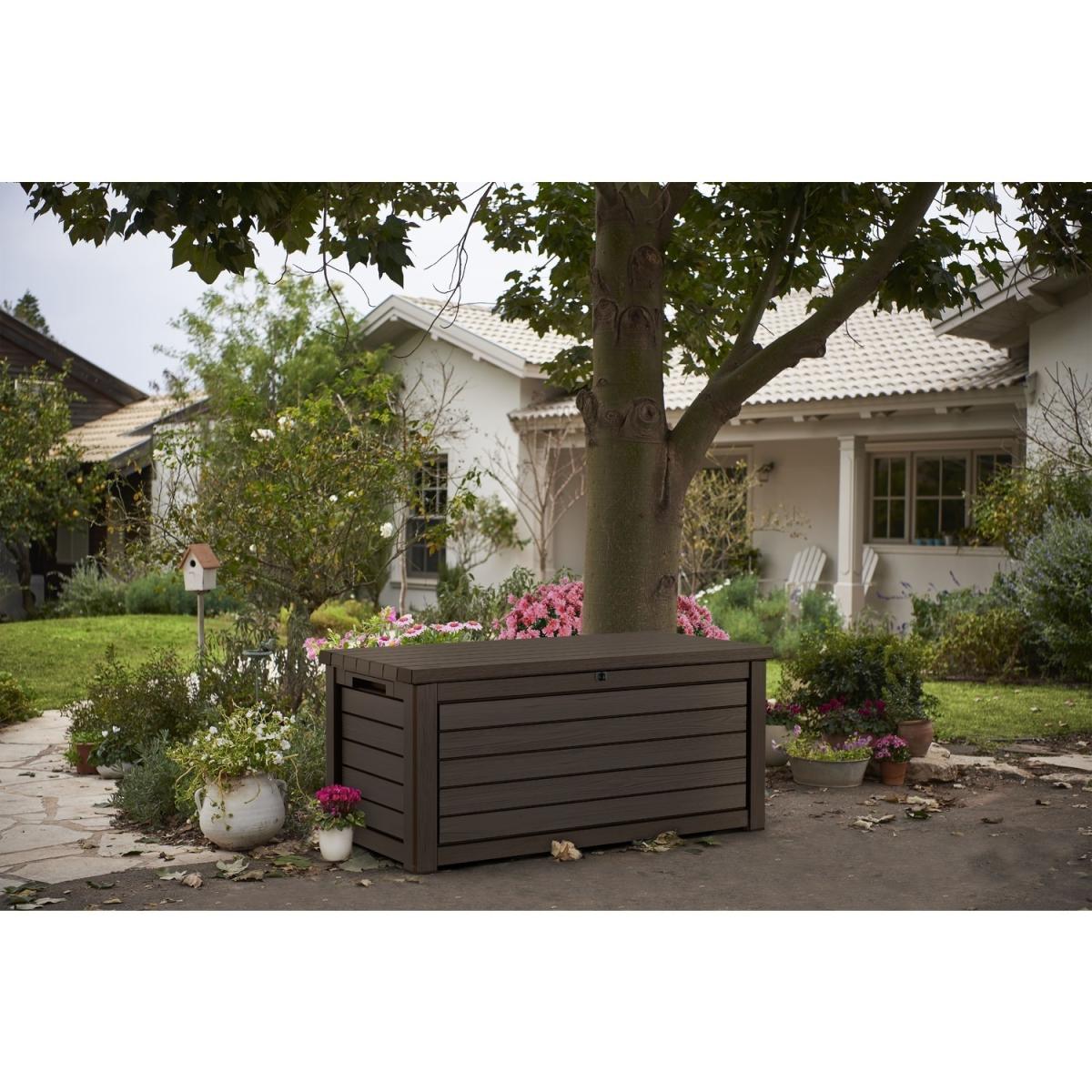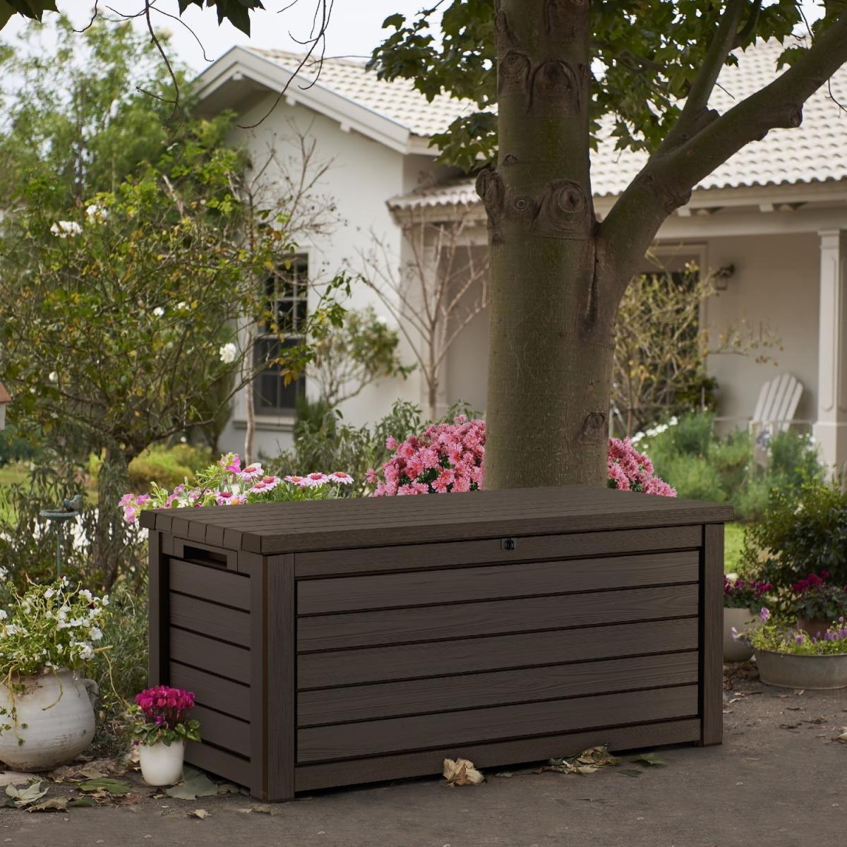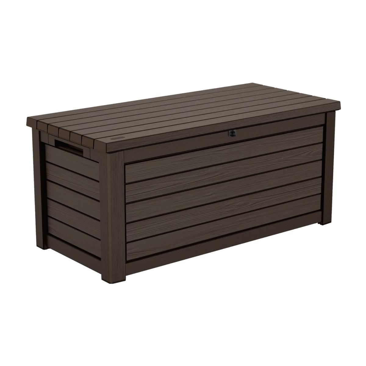 Storage Box Dimensions H69.40cm x W155cm x D72.50cmA larger chic and stylish storage box with a wooden panelled appearance perfect for storing more of the larger garden items and cushions. This storage box is waterproof and strong enough to seat 2 adults comfortably. Features. Pistons for easy opening. Water Resistant and lockable (lock not included)Strong Moulded resin with a textured wood look finish. Internal Dimensions H62.3 x W68.6 x D146.6cm. Flat packed for conveince but easy to assemble. Assembly required..