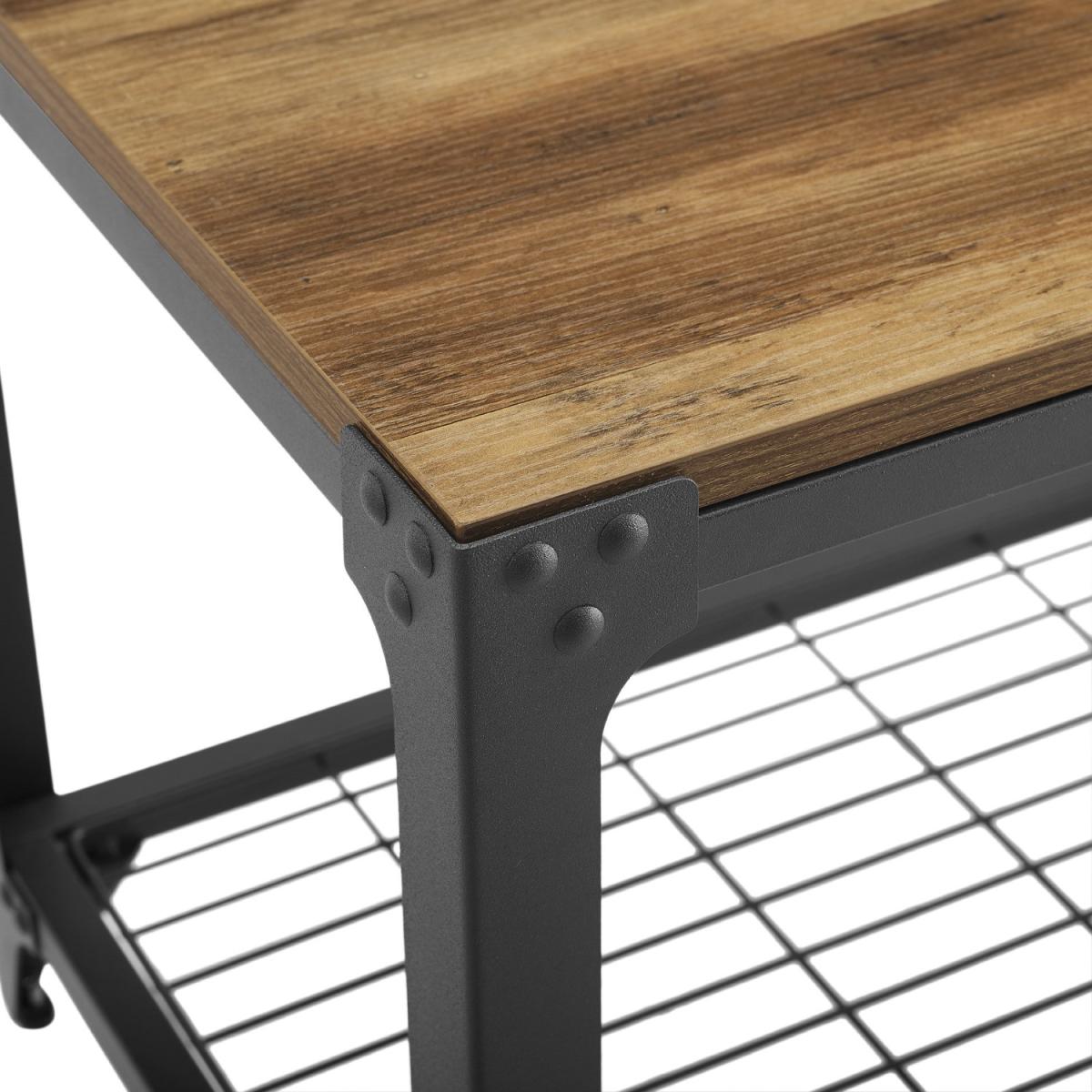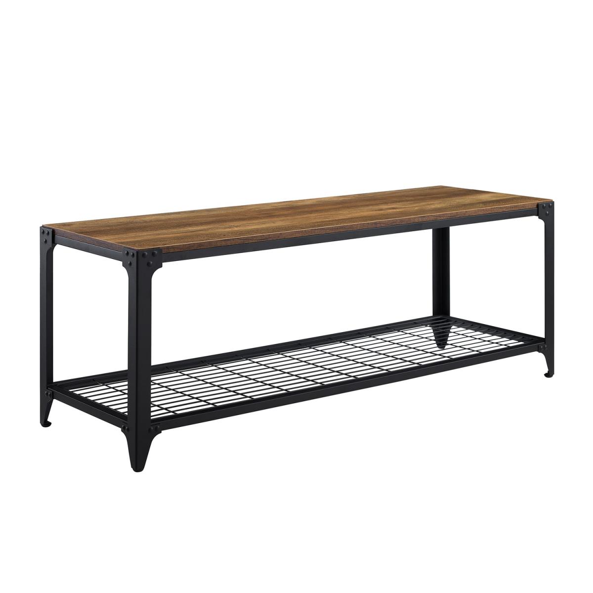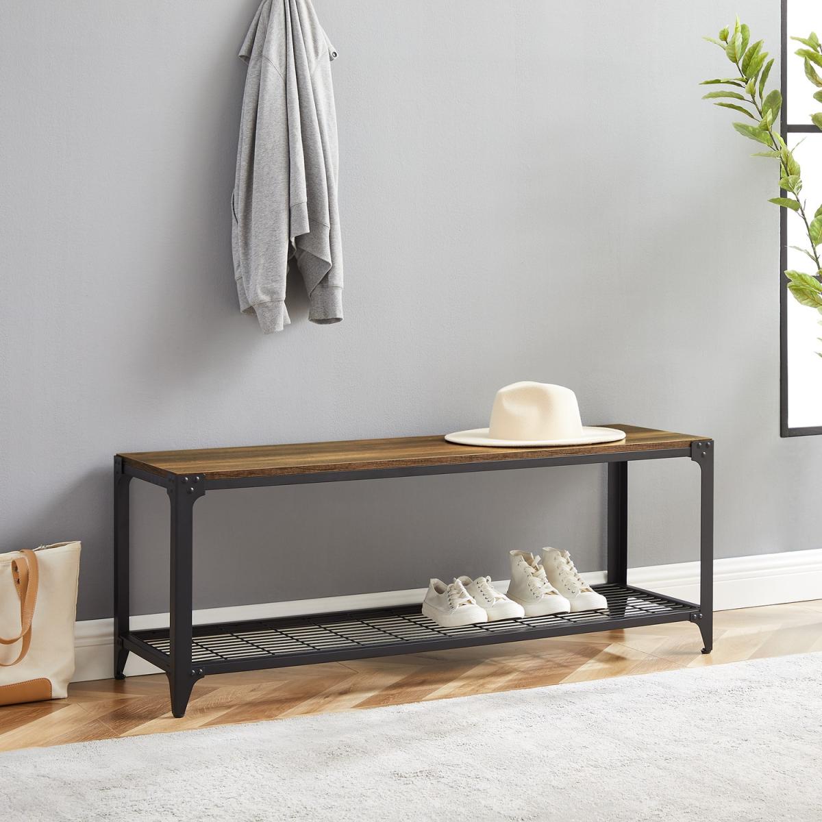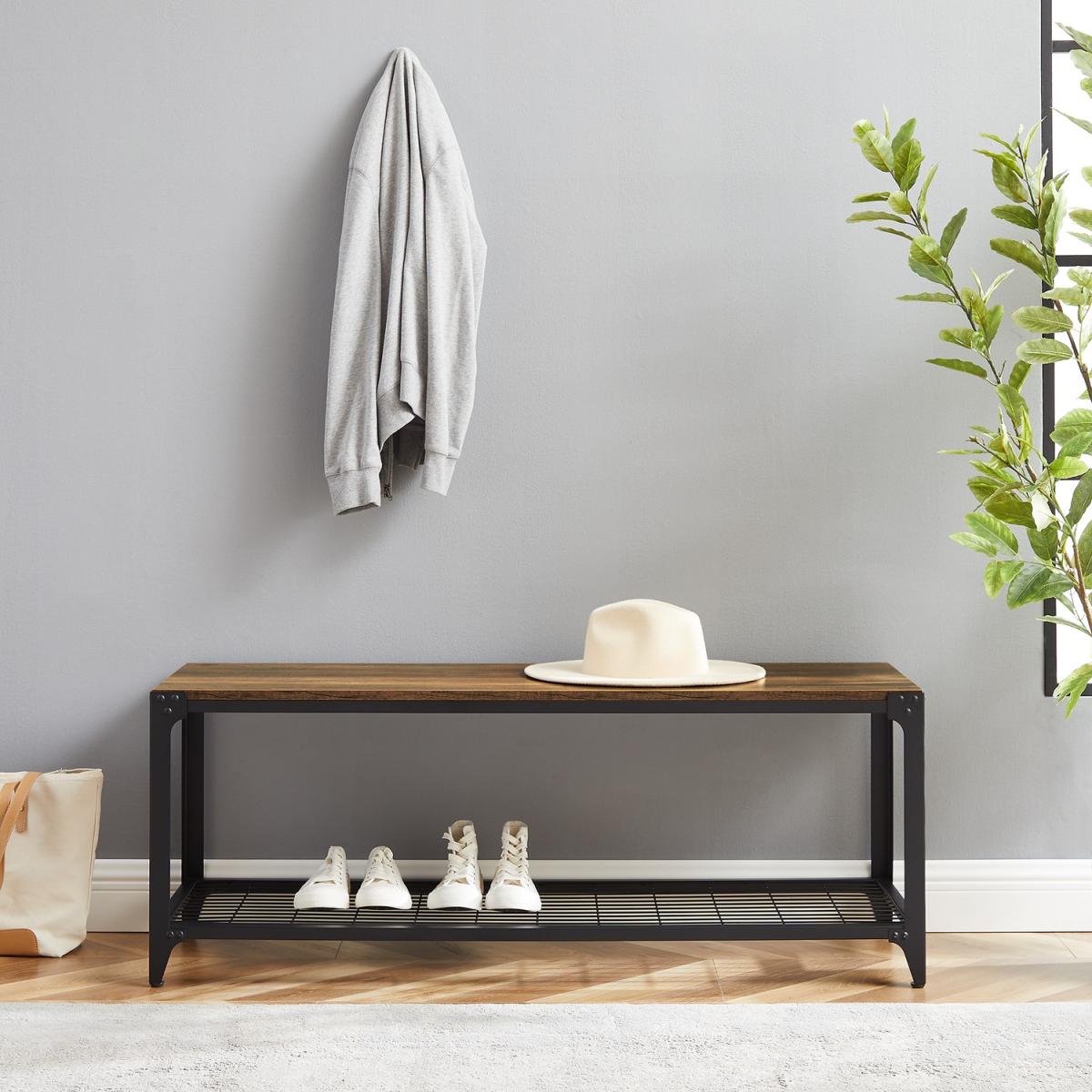 Add some much-needed storage space in your hallway while giving yourself a space to sit while you put on your shoes. The stunning industrial style hallway bench features a melamine finish on the seat, ensuring it will last the test of time. Use the lower metal shelf for baskets for hats, gloves and scarfs or simply a place to neatly house your shoes.