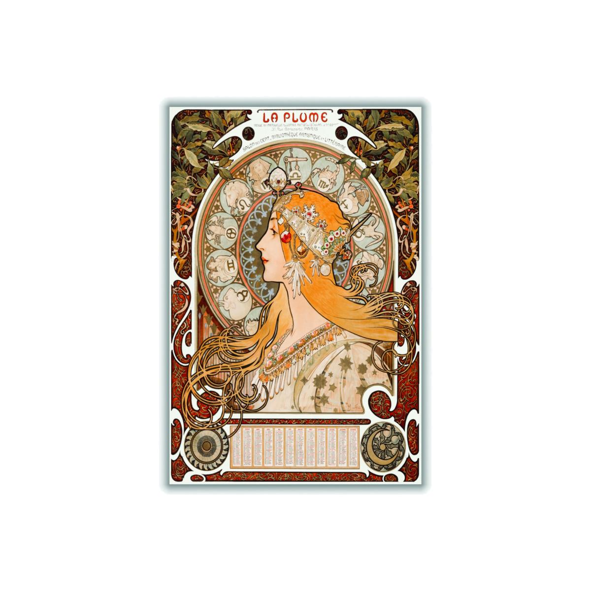I love the Brown Zodiaque Or La Plume print for its evocative Art Nouveau style, which adds a touch of vintage elegance to any space. It works particularly well in eclectic or bohemian interiors, where its intricate details and warm tones can serve as a focal point. For styling, consider framing it in a simple, understated frame to let the artwork shine, and hang it at eye level. It pairs beautifully with natural materials like wood and textiles in neutrals or richer earthy shades, making it a versatile piece that can elevate living rooms, bedrooms, or even hallways. Its size also makes it flexible for different wall arrangements-grouped with other pieces or as a standalone statement.