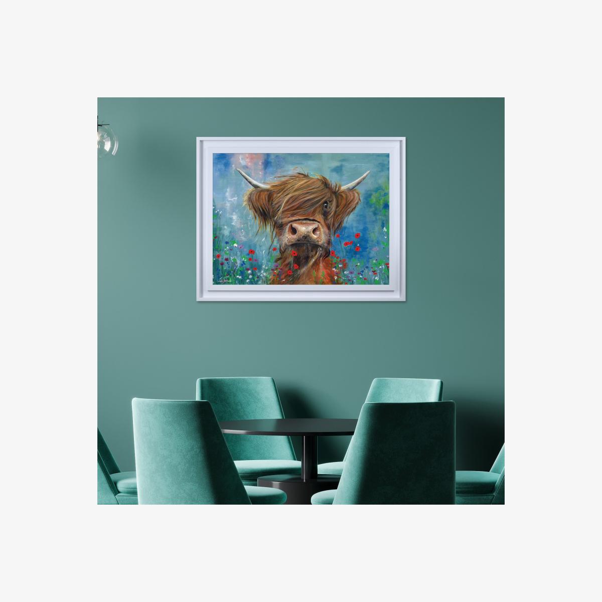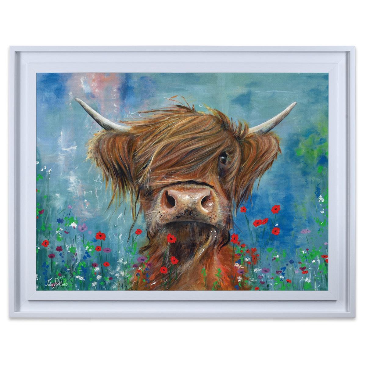 Give your home a taste of Scotland with this spring and atmoshperic Highland Cow colourful wall art print with Liquid art effect. The print comes already framed with a high quality white frame. Give your home a taste of Scotland with this spring and atmoshperic Highland Cow colourful wall art print with Liquid art effect. The print comes already framed with a high quality white frame.