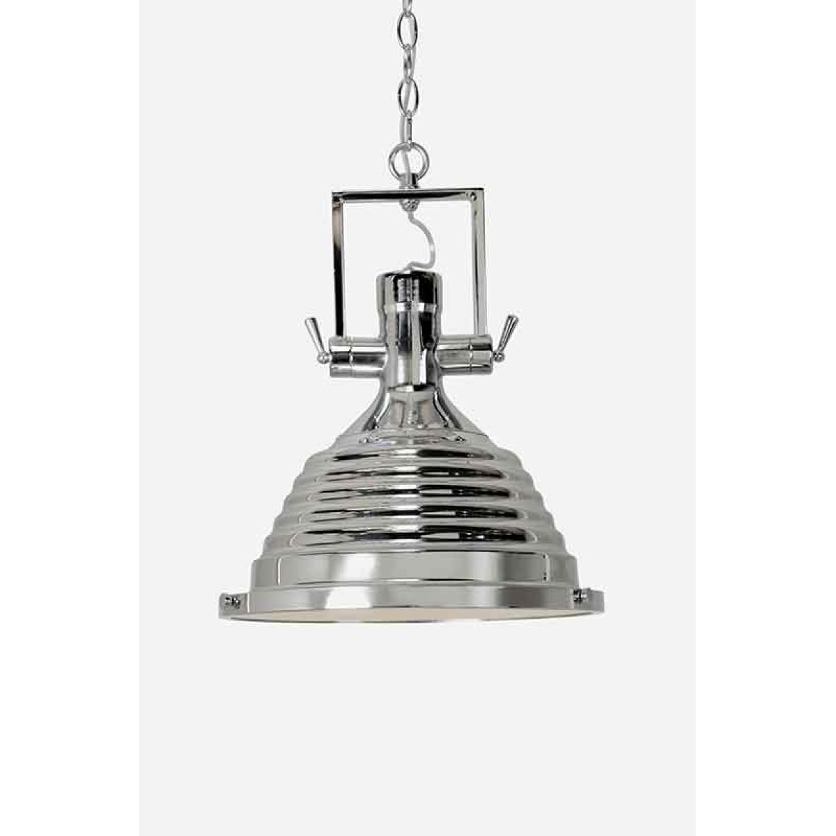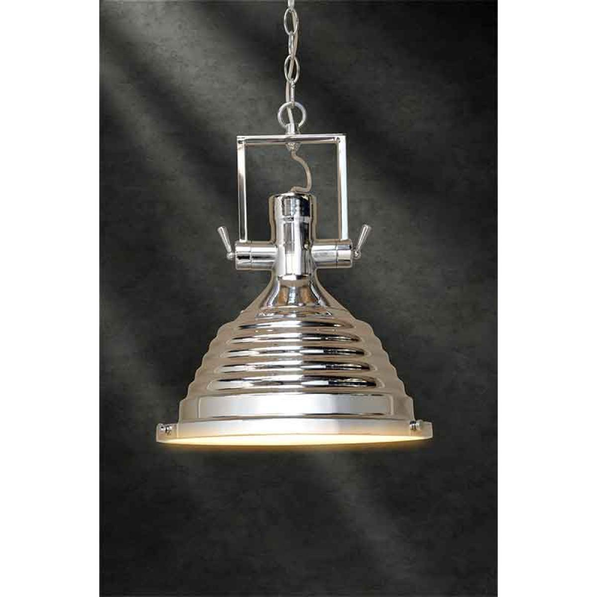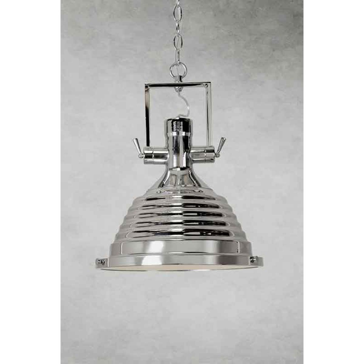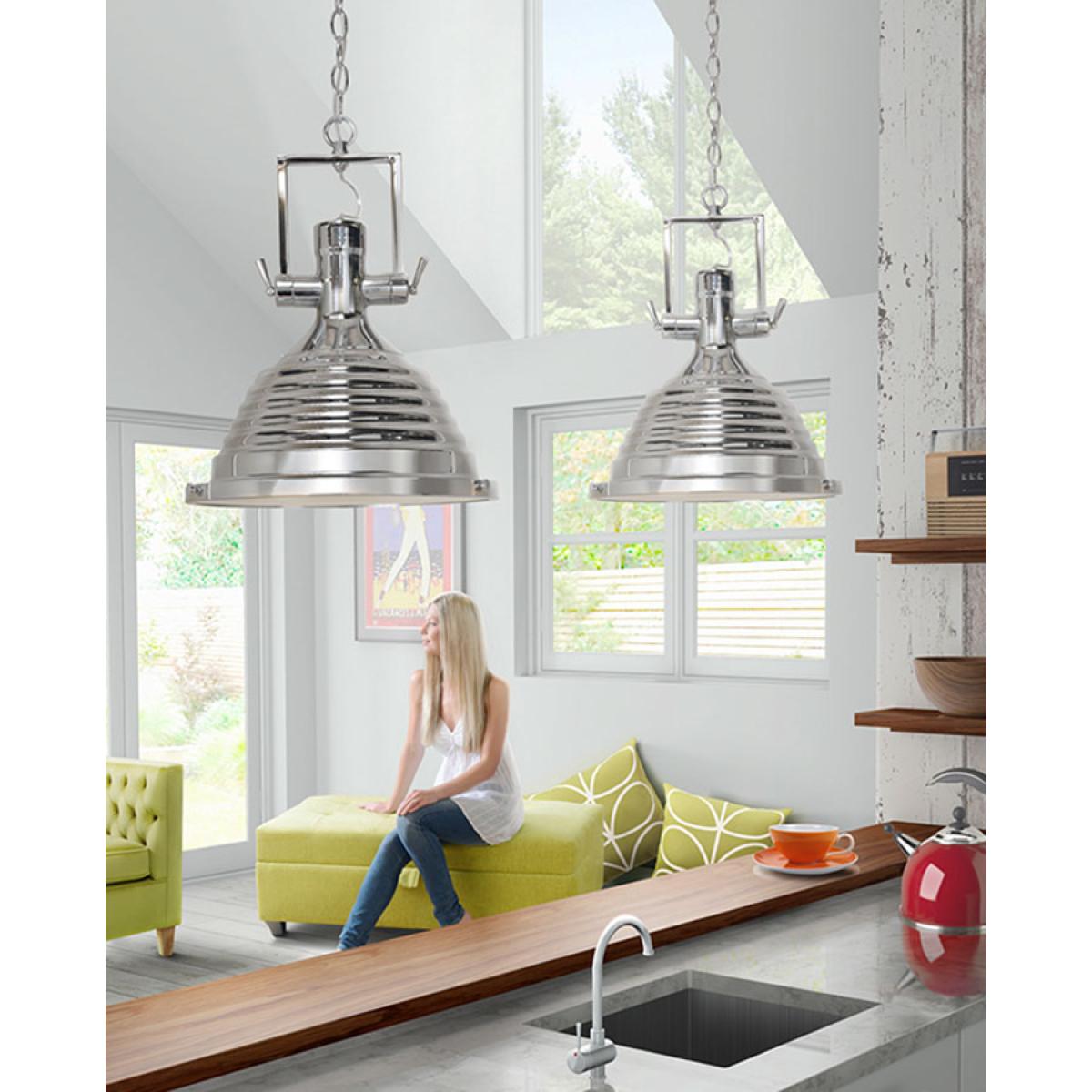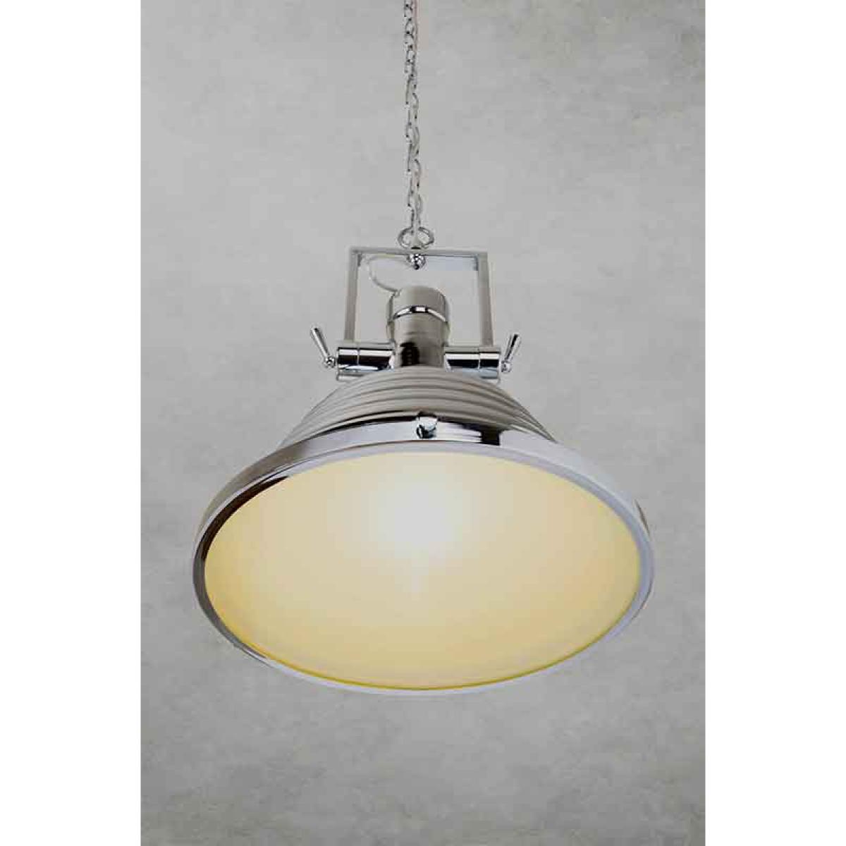 This impressive shade from our Chrome lighting range commands attention as soon as you enter the room. Solid and robust this lights style offers a no holds barred industrial look, and comes complete with diffuser to give off a warm light throughout the room. This heavy-duty, solid pendant comes complete with chain, to perfectly combine the industrial look with contemporary interior design. Light Height: 40cm. Chain Height: 114cm. Lightbulb included. Wattage: 60 W. Weight: 3. 25 kg. Cable Length: 144 cm. Bulb type: E26/E27.