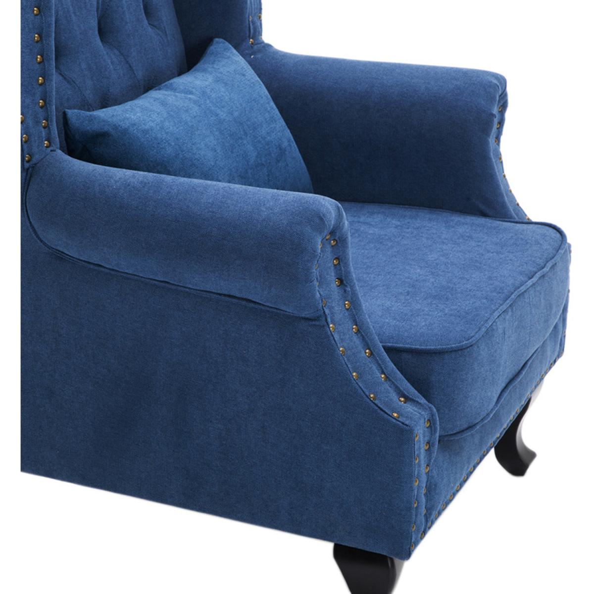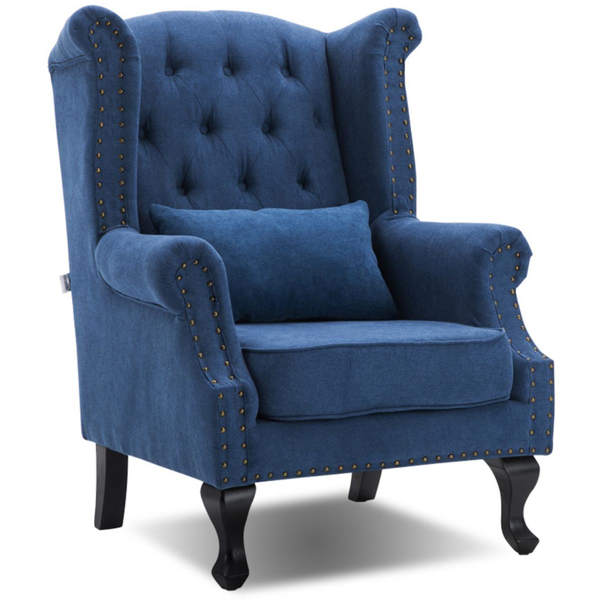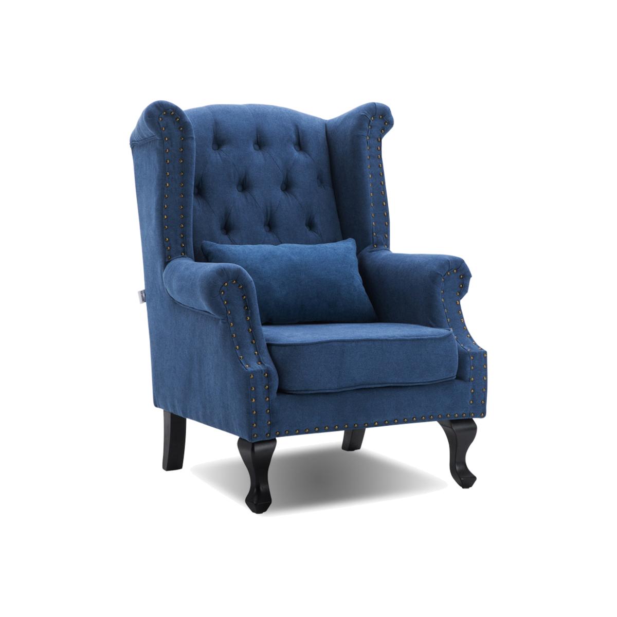I love this armchair for its timeless elegance and plush, inviting feel. The bold blue hue makes it a statement piece that works well in both classic and contemporary interiors, particularly in cosy living rooms or reading nooks. Practical styling tips include pairing it with neutral tones and textured cushions to create a balanced look, or contrasting it with warm metallic accessories for a touch of glamour. For versatility, it pairs beautifully with patterned rugs and soft throws, making the space feel both stylish and comfortable. Its classic silhouette and rich upholstery also mean it can be styled to work across different interior themes, from vintage charm to modern luxe.
