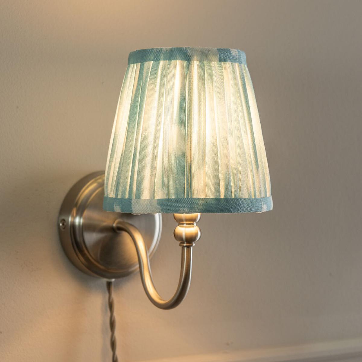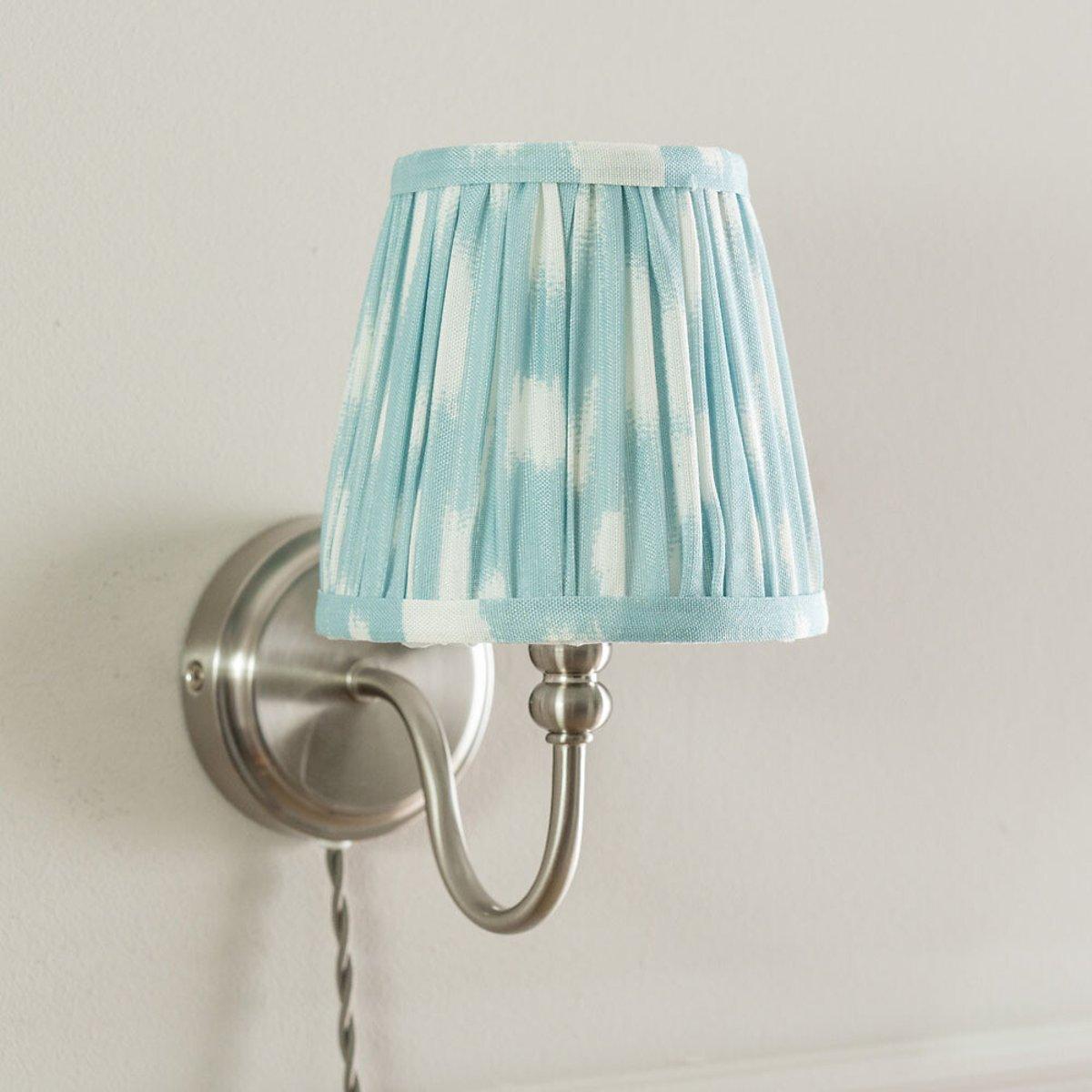 Brushed Chrome Plug In Wall Light with Blue Gathered Shade