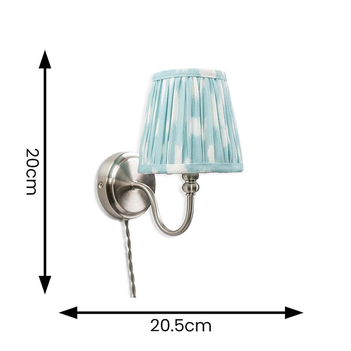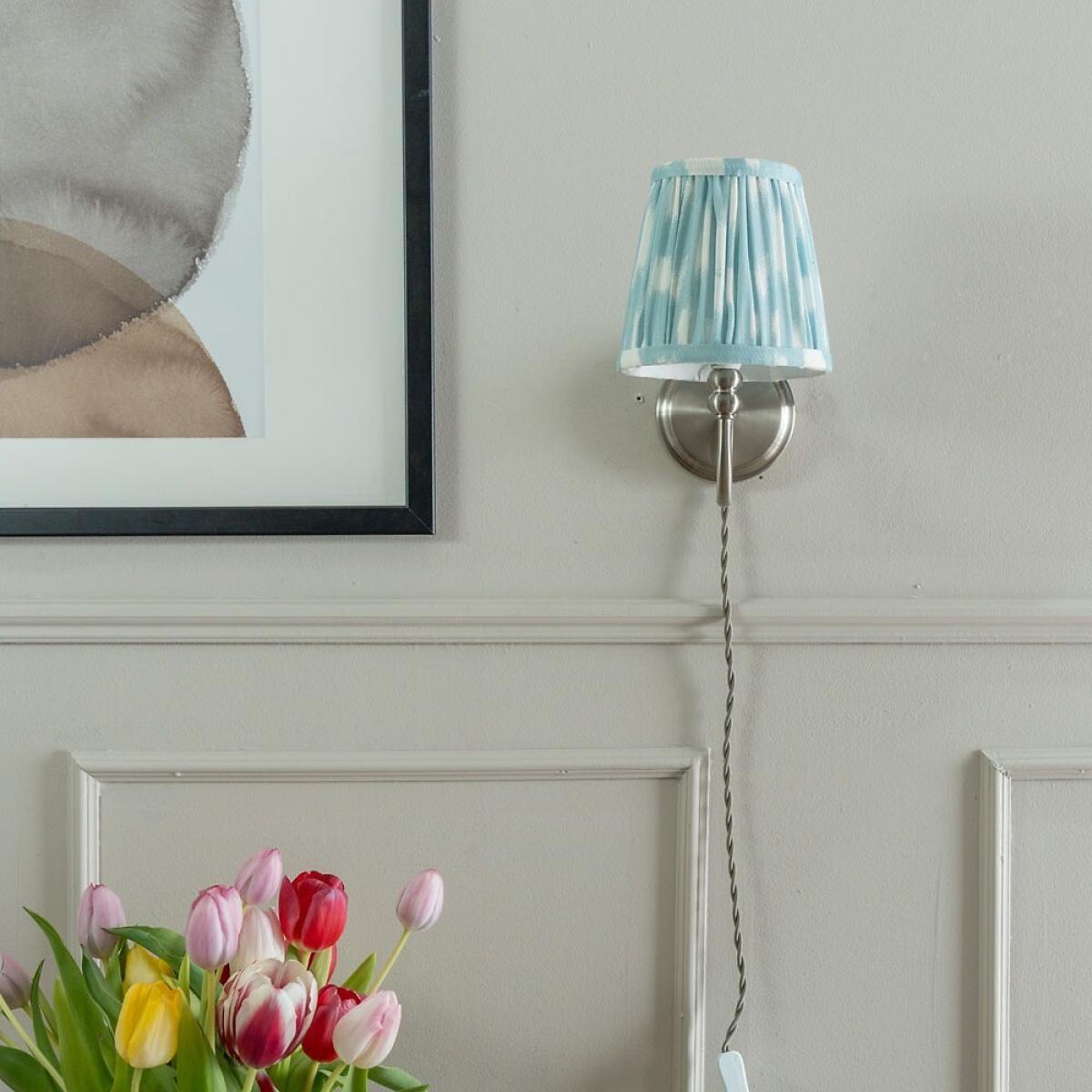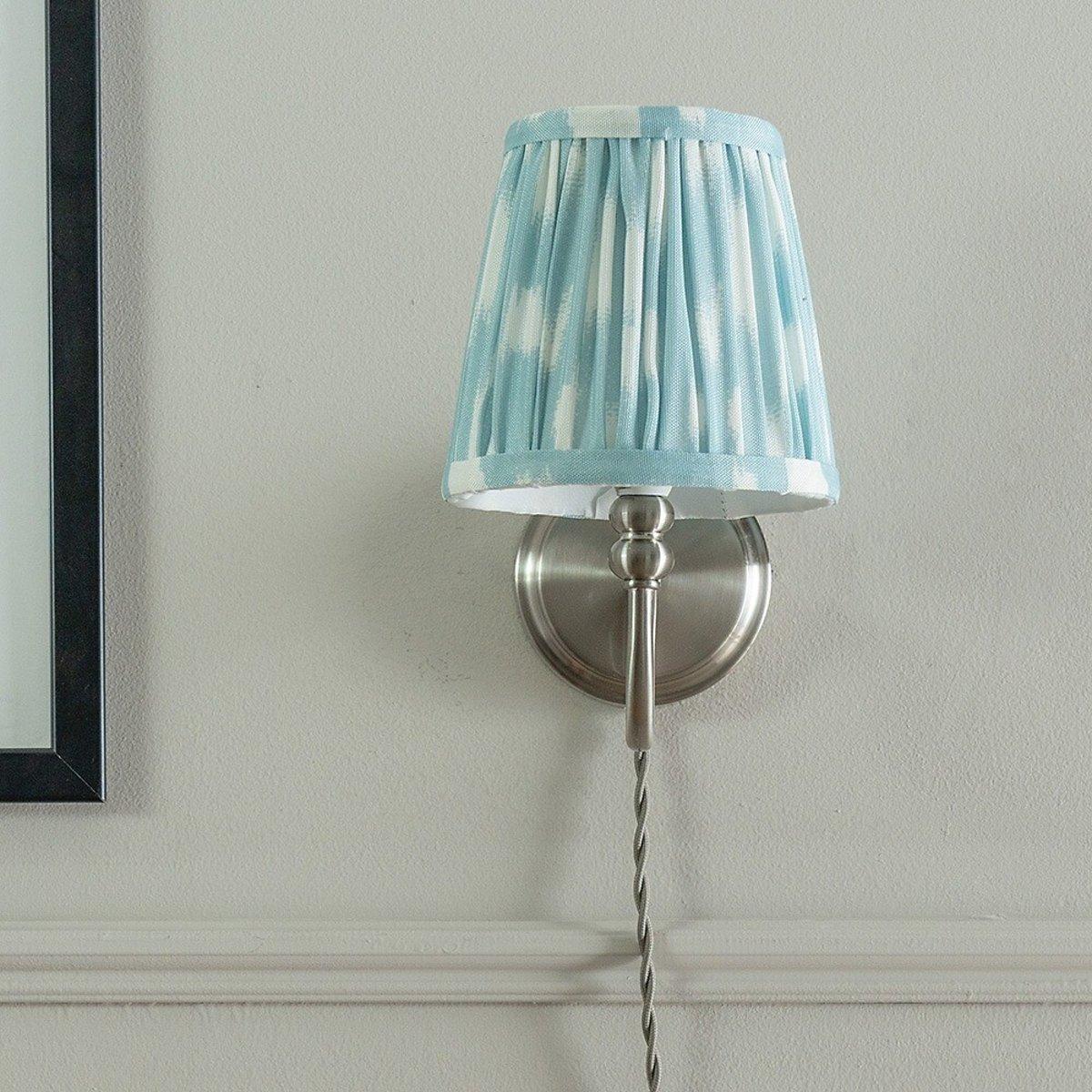 Brushed Chrome Plug In Wall Light with Blue Gathered Shade