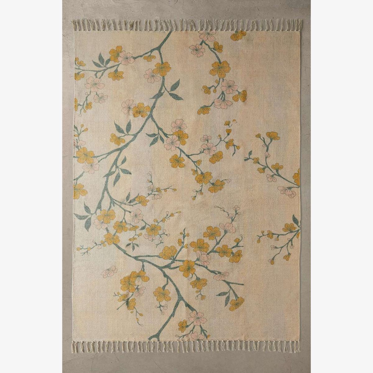 Vintage-effect rug with floral motifs in a faded, aged style. Ornate woven rug with tassel trims at each side, the perfect boho addition to your space. Suitable for use indoors or outdoors. **Content** \- 100% Cotton \- Spot clean **Size** \- 152.4cm x 213.3cm (5ft x 7ft)