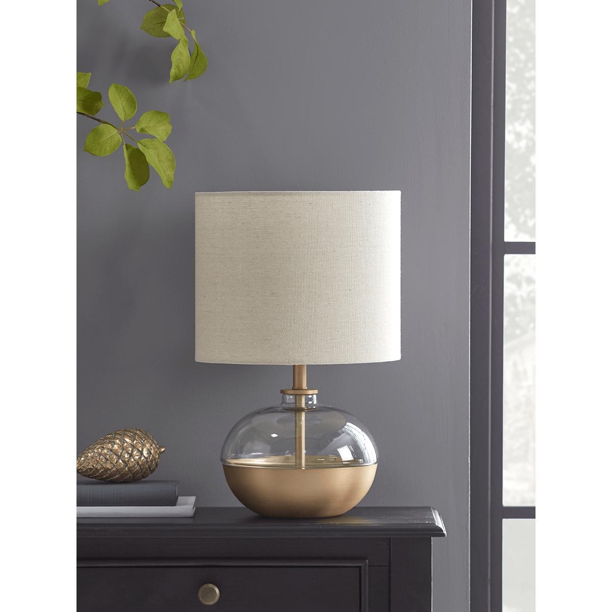 I love this table lamp for its versatile mix of brushed gold and glass, which adds a touch of contemporary elegance without feeling too formal. It works particularly well in both modern and transitional interiors, pairing nicely with neutral tones or darker colour schemes to add warmth and sophistication. Practical styling tips include positioning it on a side table or console as a statement piece, or using it to create cosy lighting in a reading nook. Keep the surrounding accessories minimal to let the lamp’s clean lines and refined finish stand out, and don’t forget to match the metal finish with other metal accents for a cohesive look.
