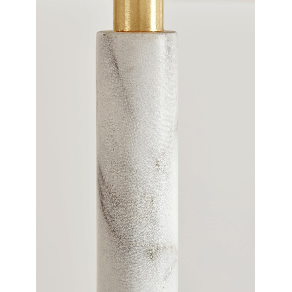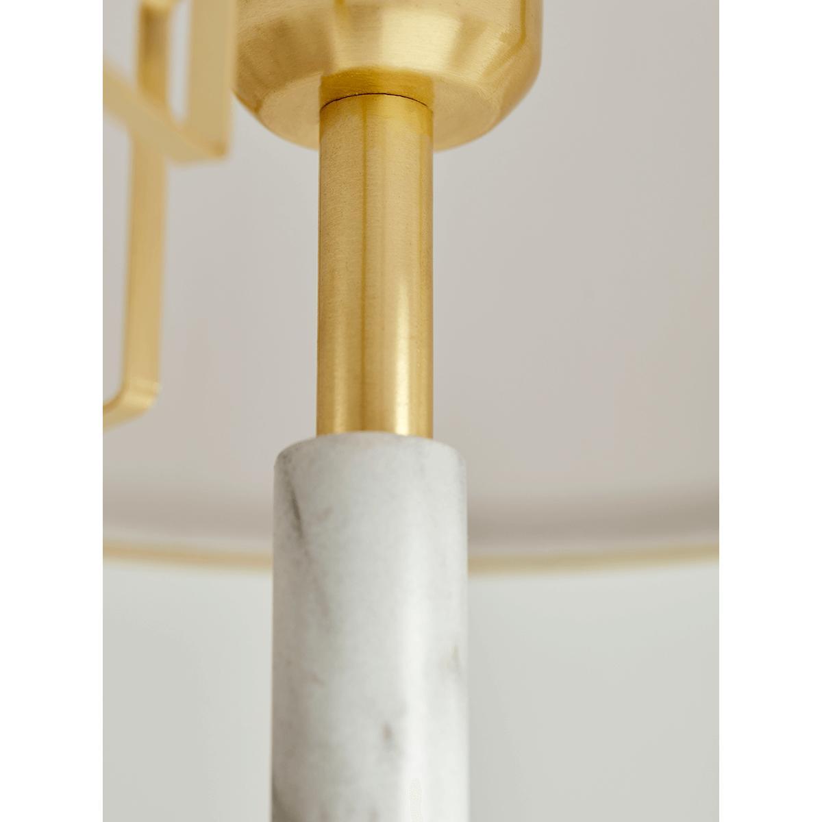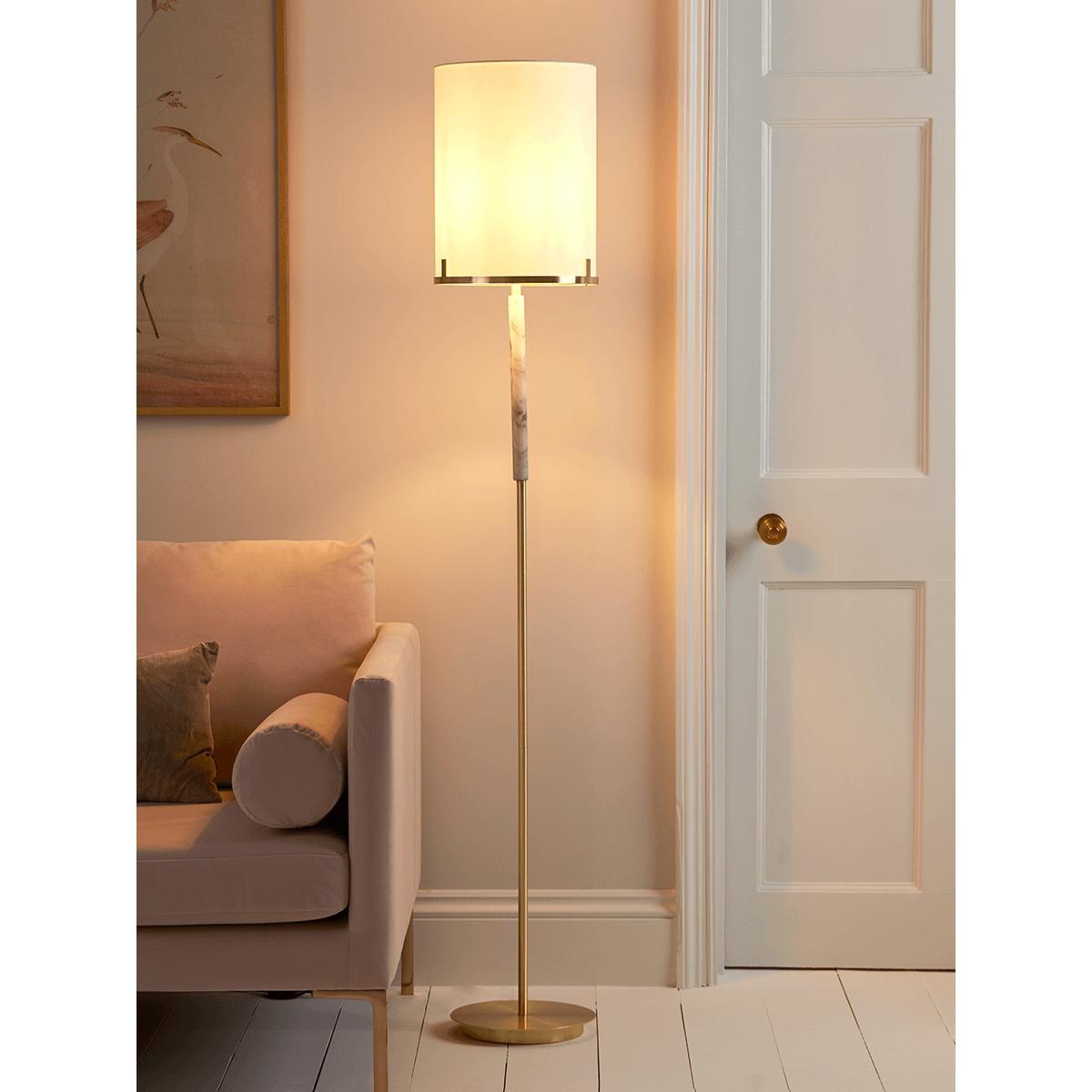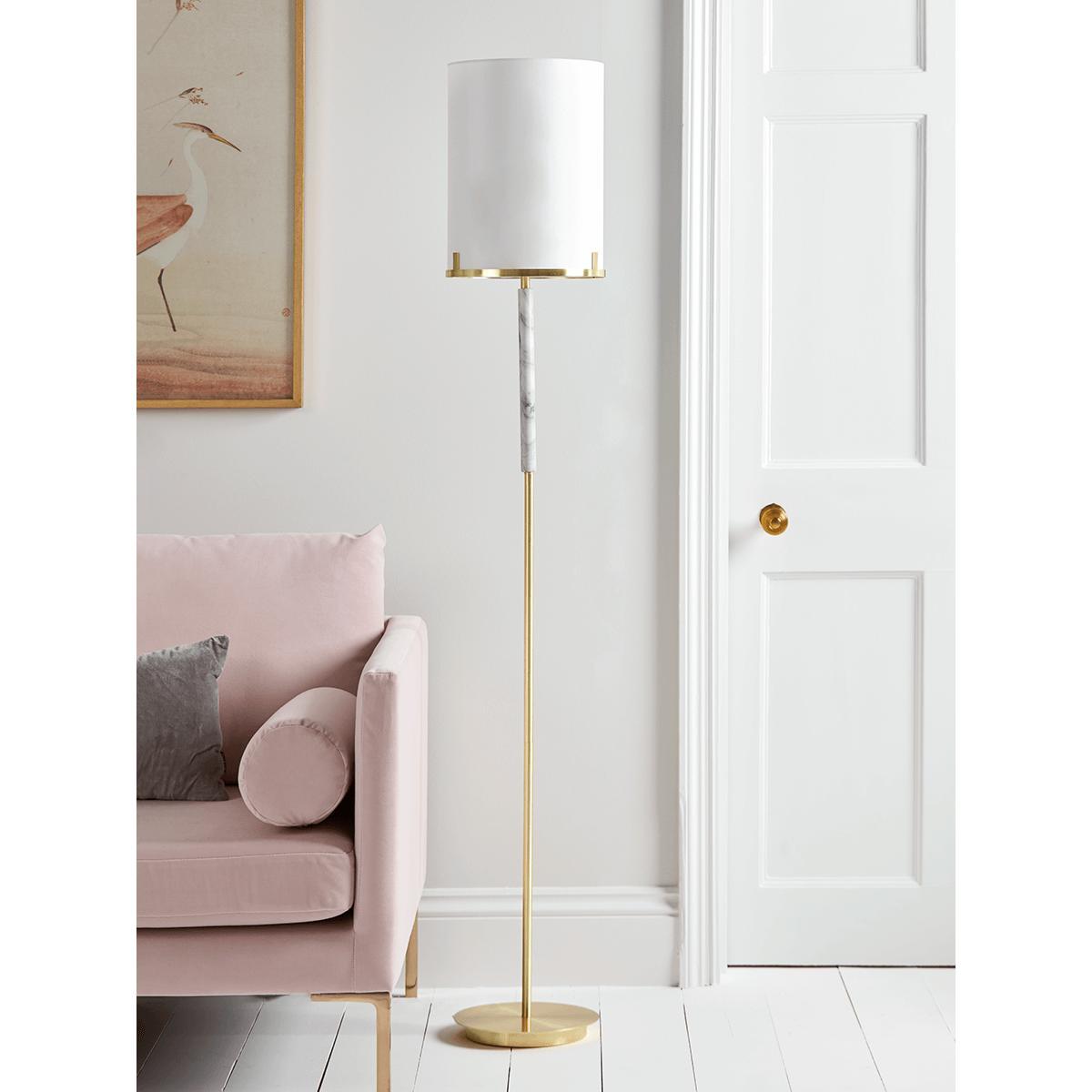 Add a premium finish to your scheme with our slender floor lamp. Perfect for any small space, the gold and marble design instantly conjures up Deco elegance. This floor lamp is topped with a white silk drum shade secured by a feature gold metal ring fitting. Pair with our. Brushed Gold & Marble Effect Wall Lamp. To striking effect. Discover how to create the perfect lighting scheme for your home using our. Lighting Buying Guide.