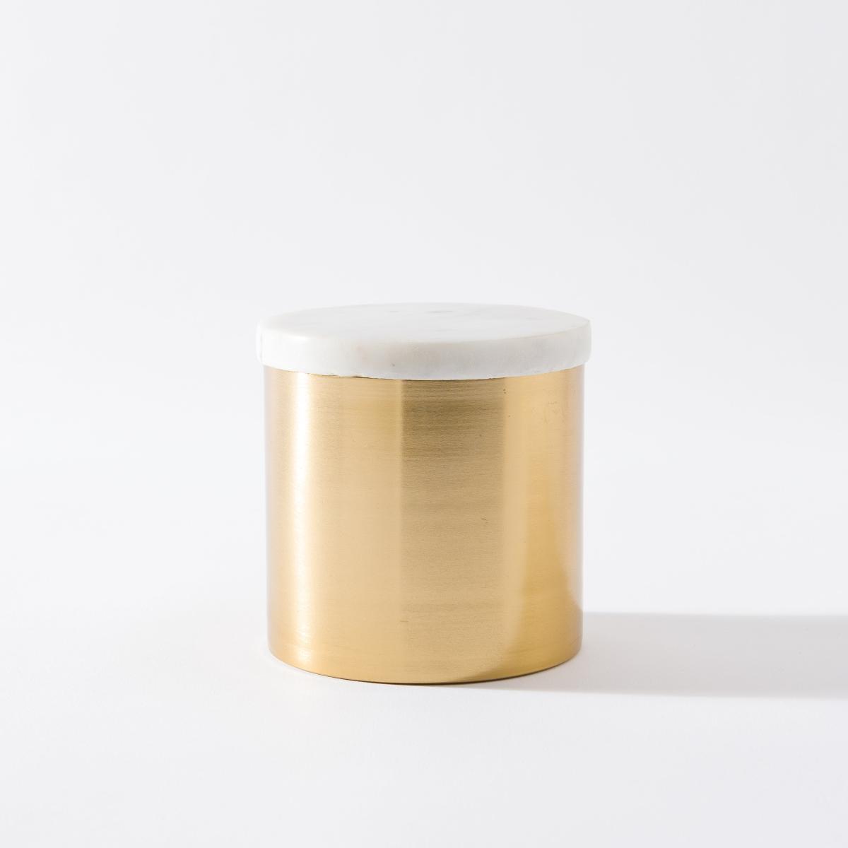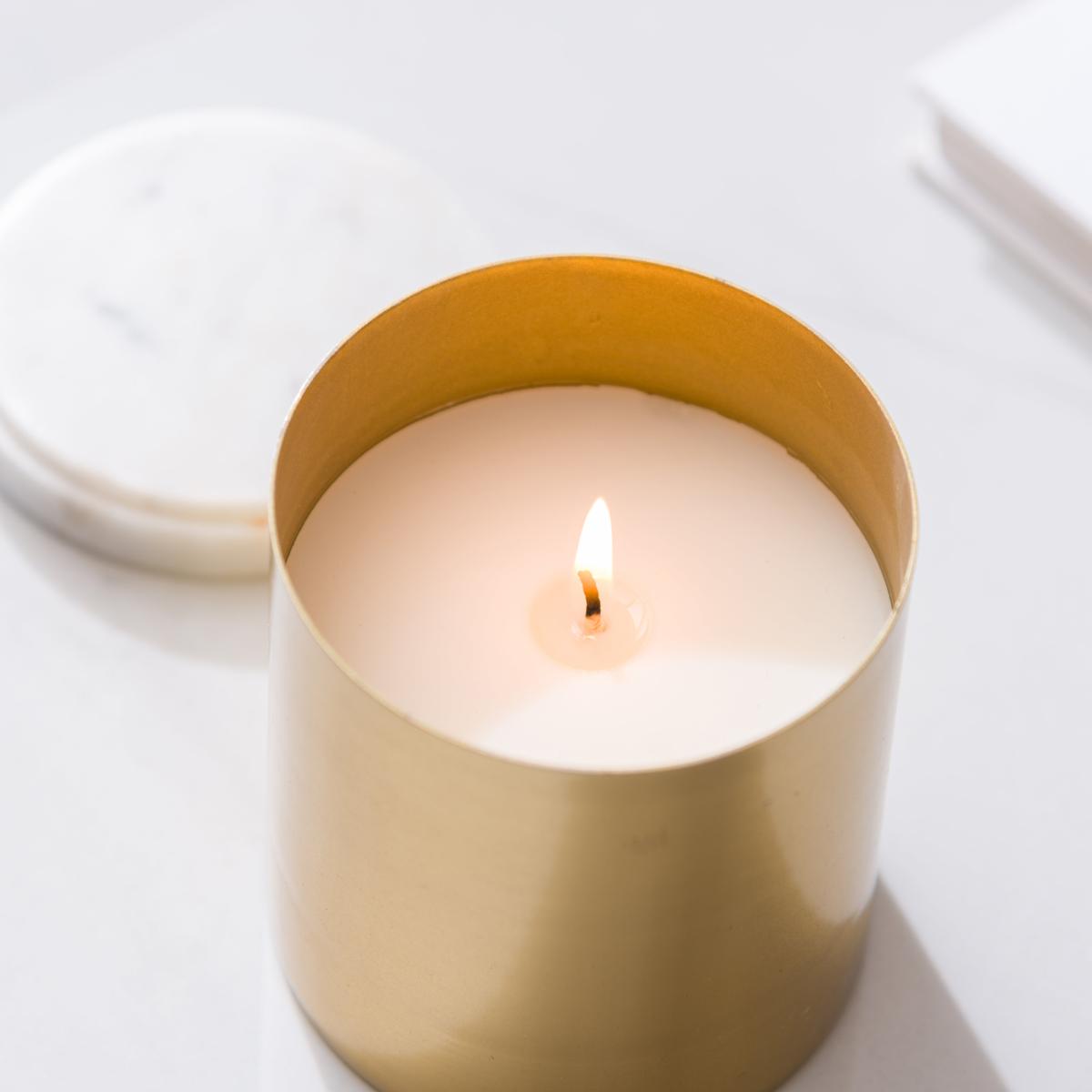 * Brushed gold coloured container * Marble lid * Floral fragrance * Up to 45 hours burn time Bring a touch of luxury to your space with this elegant brushed gold metal candle, complete with a sleek marble lid. Infused with delicate peony and a floral bouquet of jasmine, orange flower, and rose, it’s beautifully balanced with warm amber, moss, and sweet honey. With a burn time of up to 45 hours, it creates a long-lasting, inviting atmosphere in any room. The marble lid adds a sophisticated finish, doubling as a stylish accessory when not in use. Perfect for treating yourself or gifting to someone special, it’s a lovely addition to any home.