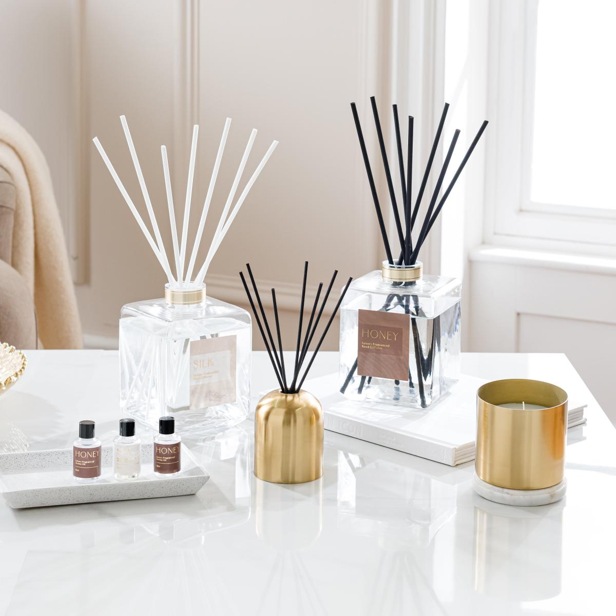 I love this candle for its luxe brushed gold finish and the beautiful floral honey scent that adds warmth without overpowering a space. It works particularly well in contemporary interiors that lean towards glam or art deco styles, but it can also elevate a rustic or boho setting when paired with natural textures. For practical styling, try placing it on a clean, minimal surface-like a marble or white wooden tray-and combine with other metallic accents for a cohesive look. It’s perfect as a standalone centrepiece or layered with candles of different heights to create a relaxed, inviting atmosphere.