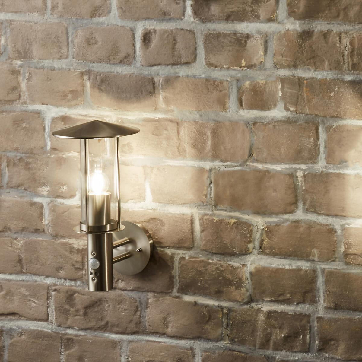 This chimney style outdoor wall light will look perfect either side of a door to illuminate your garden or porch. The stainless steel metal is complimented by the clear glass surrounding the bulb and allows the light to shine bright. As an added feature the lamp has a PIR sensor to allow the lamp to illuminate when near by. Please note bulb is not included Dimensions: L 17cm W 19cm H34cm Bulb Fitting: E27 Candle Max Wattage: 60W. This product will be dispatched by one of our trusted suppliers. You’ll be contacted by their selected courier about your delivery.