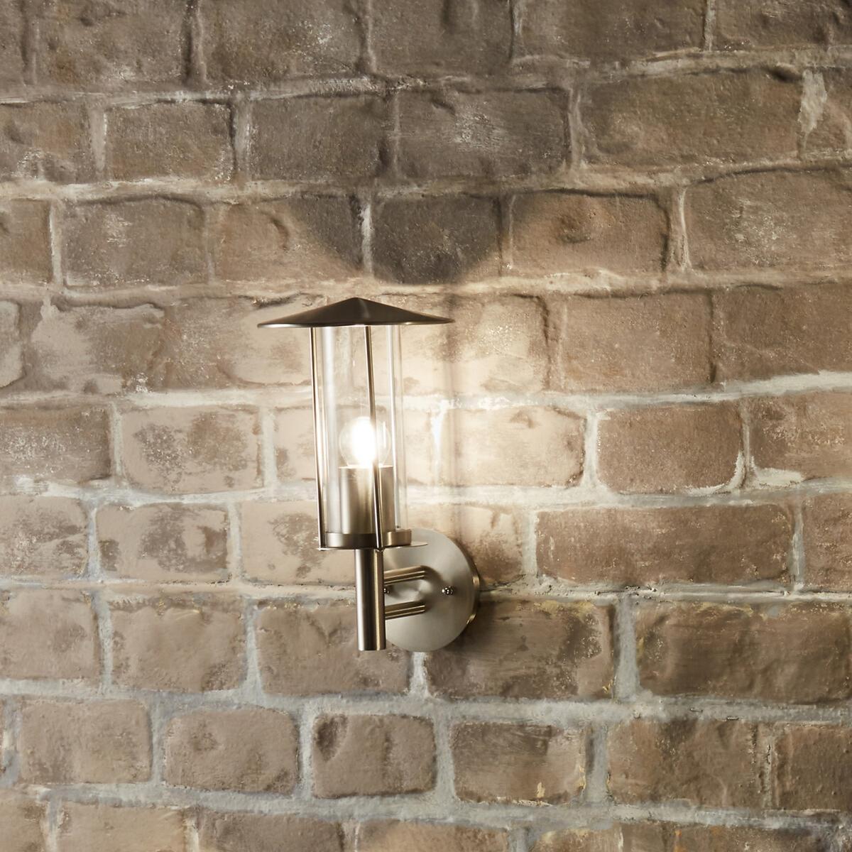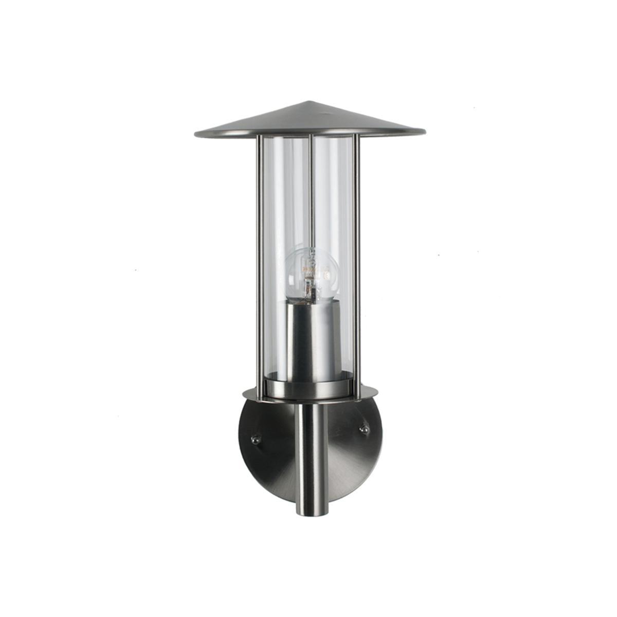 This chimney style outdoor wall light will look perfect either side of a door to illuminate your garden or porch. The stainless steel metal is complemented by the clear glass surrounding the bulb and allows the light to shine bright. Please note bulb is not included Dimensions: L 17cm W 19cm H32cm Bulb Fitting: E27 CANDLE Max Wattage: 60W. This product will be dispatched by one of our trusted suppliers. You’ll be contacted by their selected courier about your delivery.