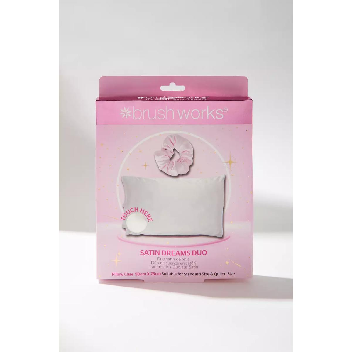 This pillowcase and scrunchie duo from Brushworks will elevate your nighttime routine. They're crafted from a satin fabrication which is extra gentle - perfect for protecting hair and skin at night. **Content + Care** \- 100% Satin- Machine wash **Size** \- Pillowcase: 50cm x 75cm