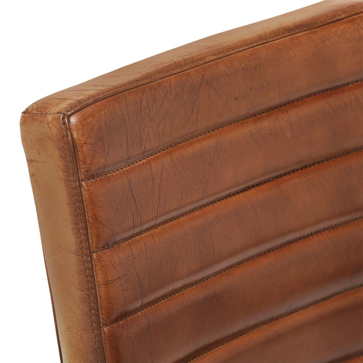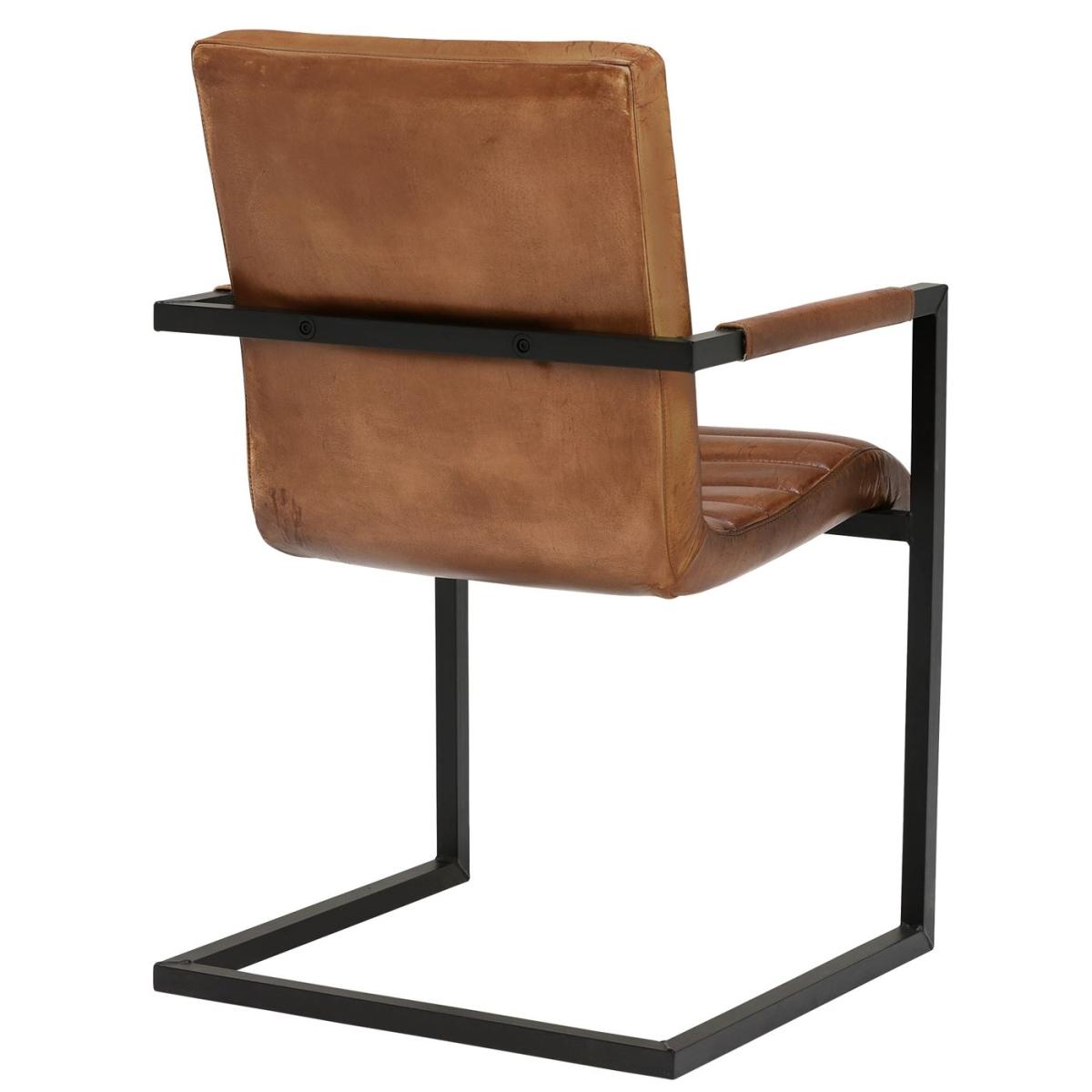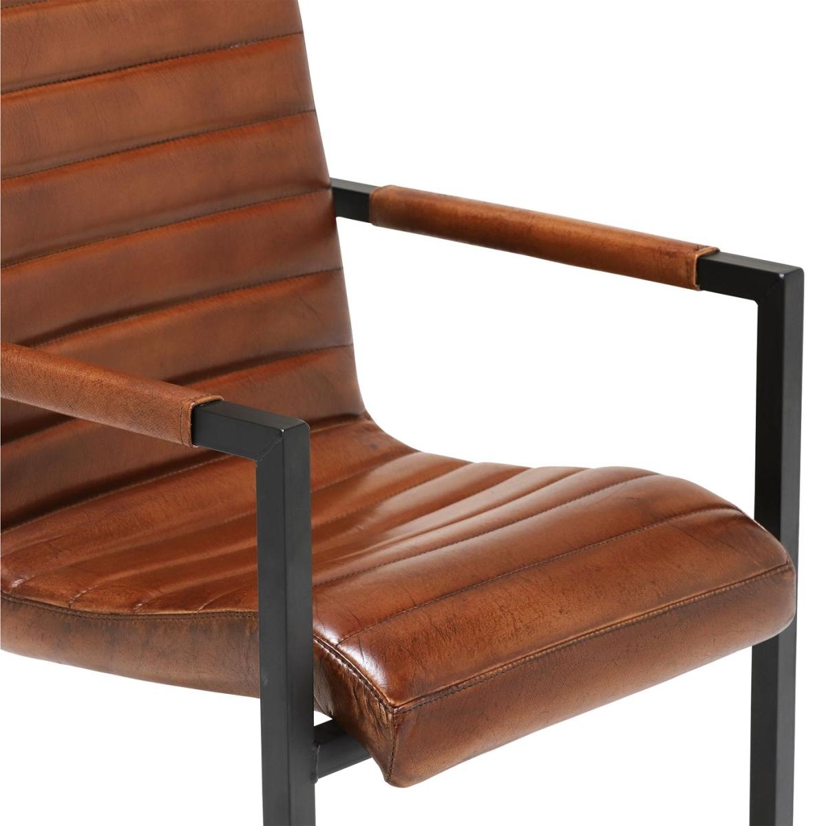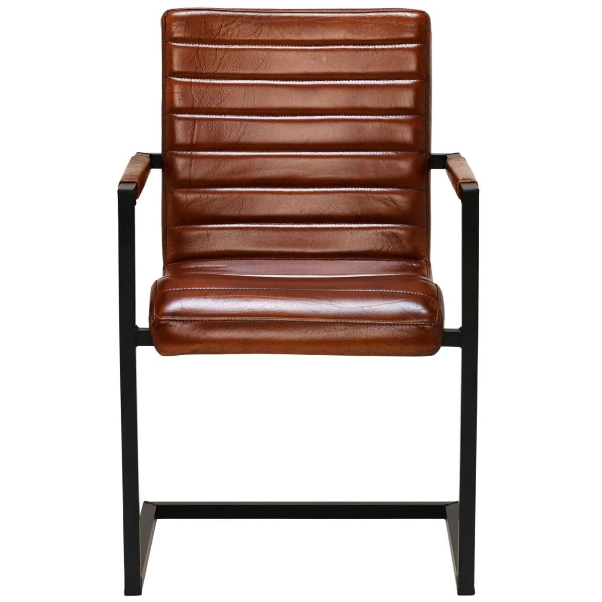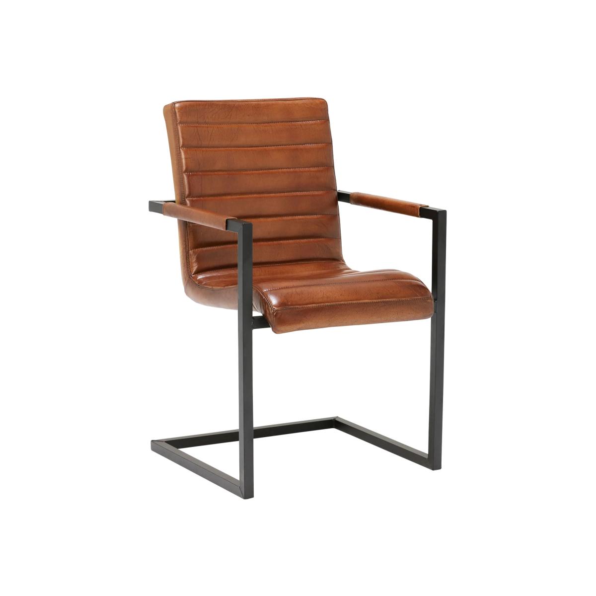 Design. A fabulous chair which works well with most tables, in a light brown vintage buffalo leather with a metal frame to create an authentic style.