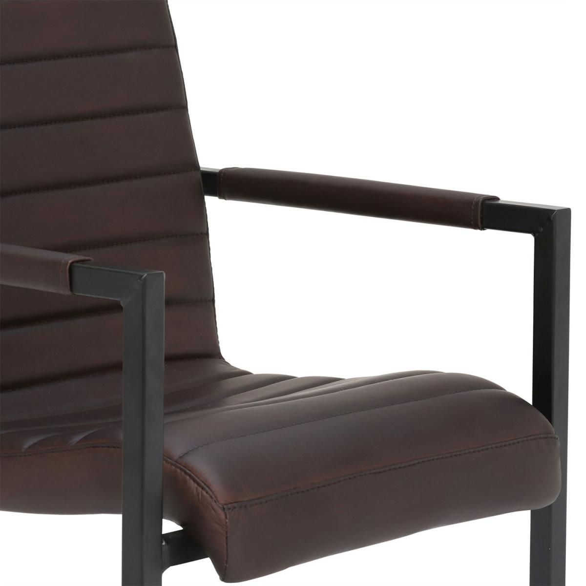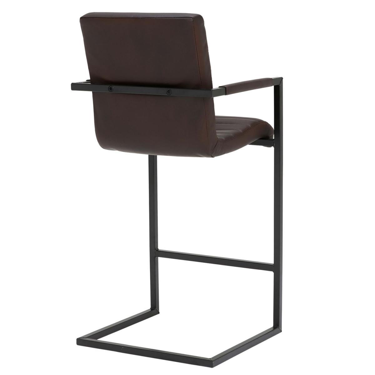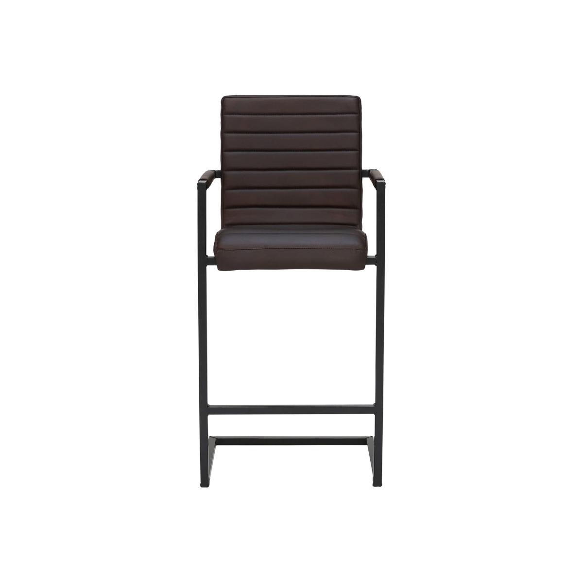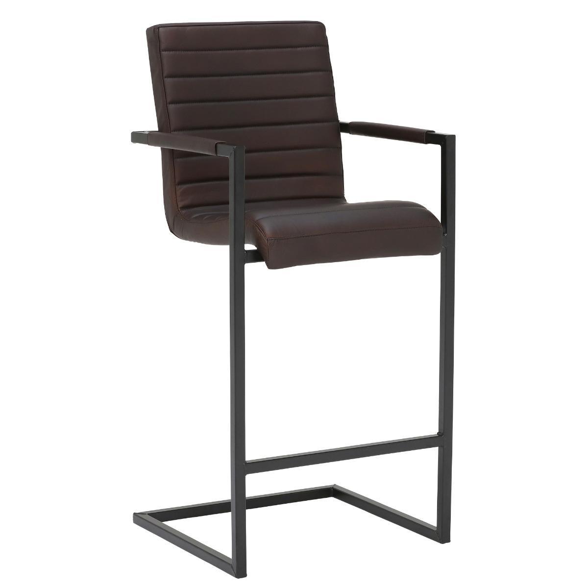 Design. With its sharp, streamlined look and industrial charm, the Brutus leather bar stool brings real character to any living area. Featuring a contemporary cantilever frame in black metal, the bar stool has two handy armrests and a high back to keep you snugly supported. Foam cushioning gives the seat some added comfort, upholstered in a rich, hand-treated leather of your choice. Stylish ribbed stitching provides a modern finishing touch, showcasing the quality of craftsmanship throughout. Shown in Rich Brown Matt Leather with Matt Black Frame.