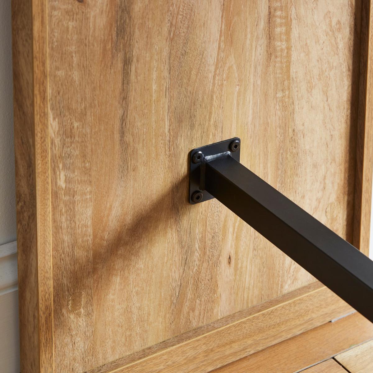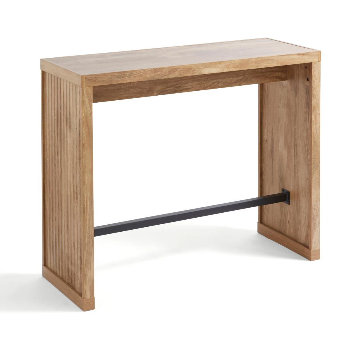 I’m a big fan of this mango-wood-effect bar table for its slim, slatted end panels and warm brown tone - it brings instant texture without overwhelming a small space. It sits neatly against a wall or window ledge, making it ideal for city flats, coastal retreats or Scandi-inspired kitchens. Styling-wise, pair it with metal-framed stools (rattan or black iron work well) and lean a slim LED lamp or a row of herb pots along the back edge. Keep barware and glasses on a tray to avoid clutter, and add a trailing plant or two for a bit of greenery. It can double as a casual desk, so it’s as practical as it is stylish.