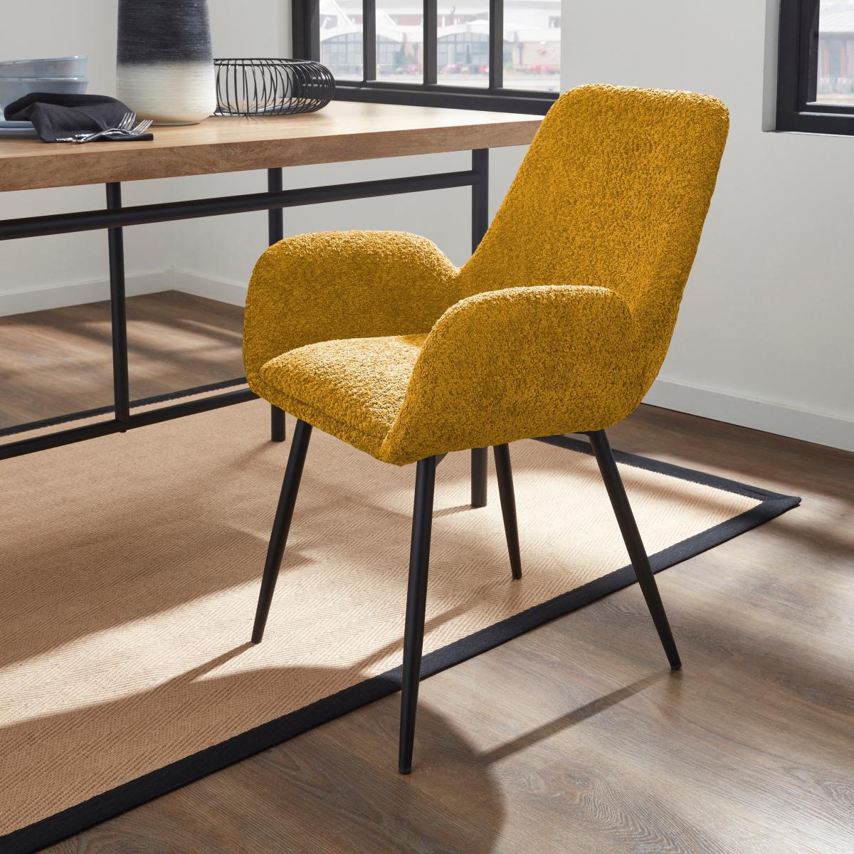 I love this dining set for its modern yet inviting aesthetic. The Bryant table’s sleek rectangular shape offers versatility, fitting well in both contemporary and minimalist interiors, while the Axel chairs in Old Gold Boucle add warmth and texture. It works particularly well in open-plan living spaces or kitchens where a stylish, functional family or entertaining zone is desired. Practical styling tips include pairing it with neutral or earth-toned accessories to let the chairs’ colour stand out, and adding statement lighting or greenery above to create a balanced, inviting atmosphere. Its understated elegance also makes it flexible enough for more eclectic decor, making it a great all-rounder for stylish, practical dining areas.