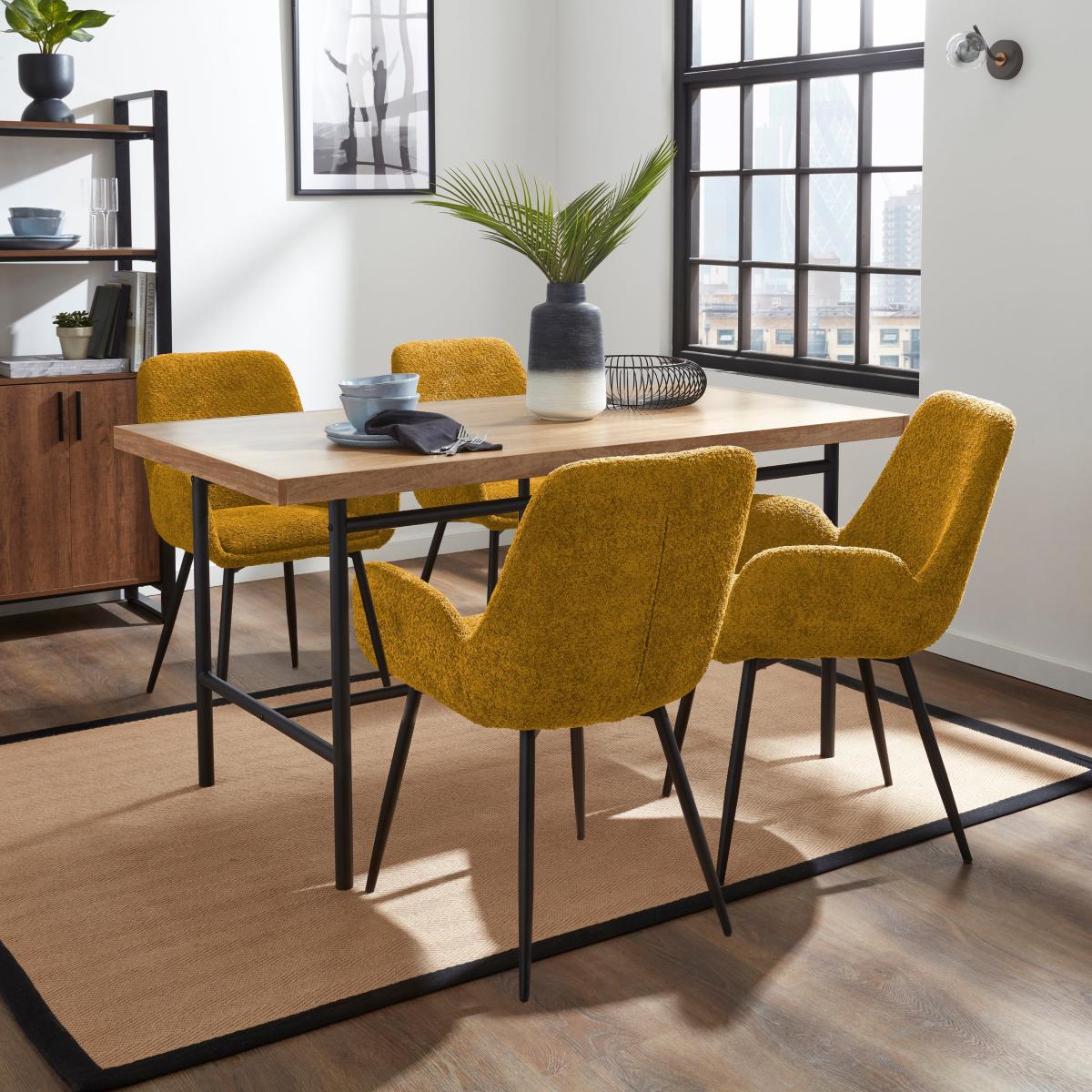 Bryant Rectangular Dining Table with Axel Old Gold Boucle Dining Chairs