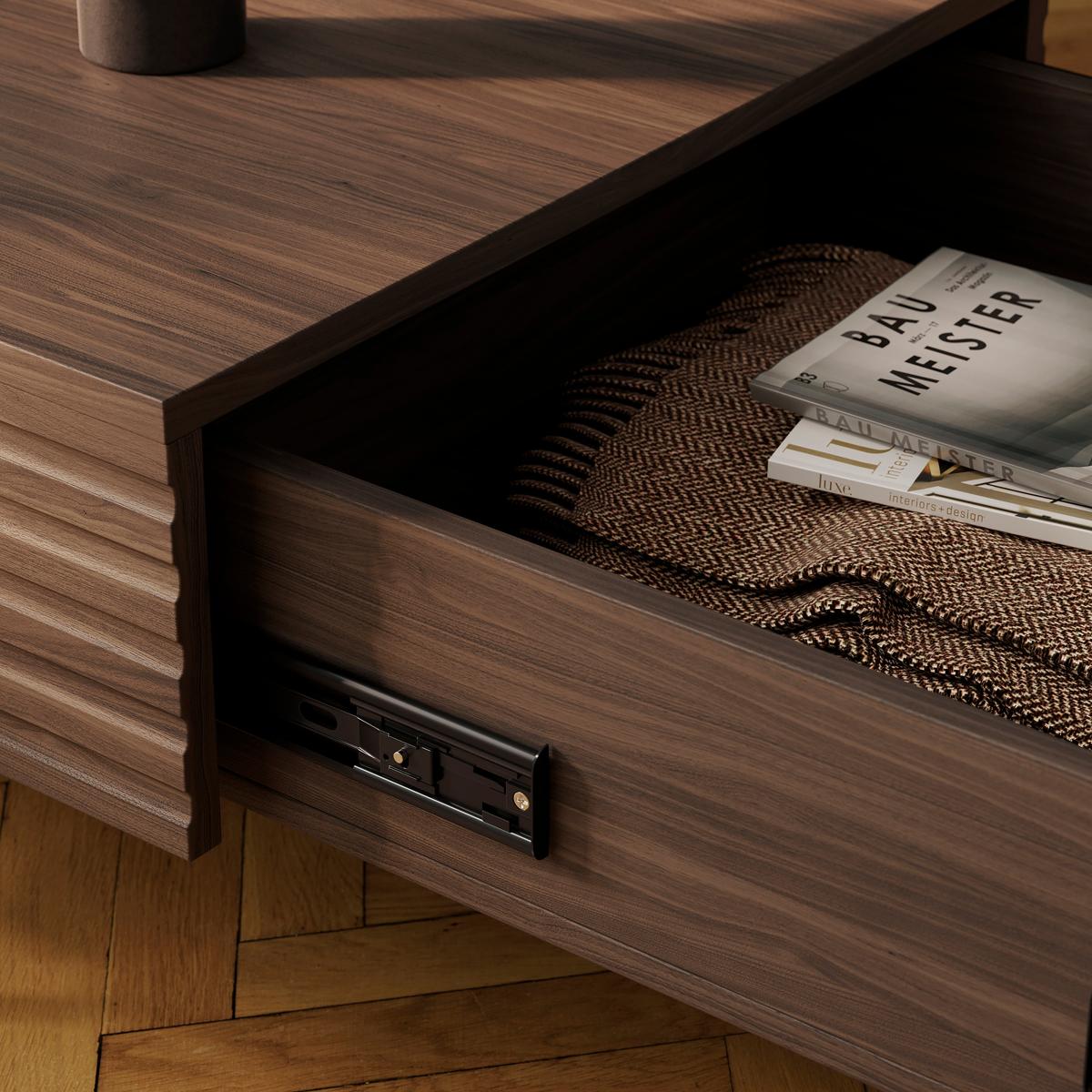 Dunelm Exclusive - Designed and Developed by Dunelm* Coffee table* Practical & stylish* Convenient storage* Sliding top panels* Soft close mechanism* Metal legs Experience a masterpiece of practicality and style with the Bryant Coffee Table, meticulously crafted to meet your storage needs and the perfect addition to any modern living space. With its sleek sliding top panels, you can easily access the large storage space within, making it the perfect solution for those who value convenience. The soft close mechanism ensures a smooth and gentle closure, so you can store your belongings without any hassle and the sleek metal legs provide a perfect contrast with the warm wood effect finish, creating a striking look that adds to the overall aesthetic appeal.