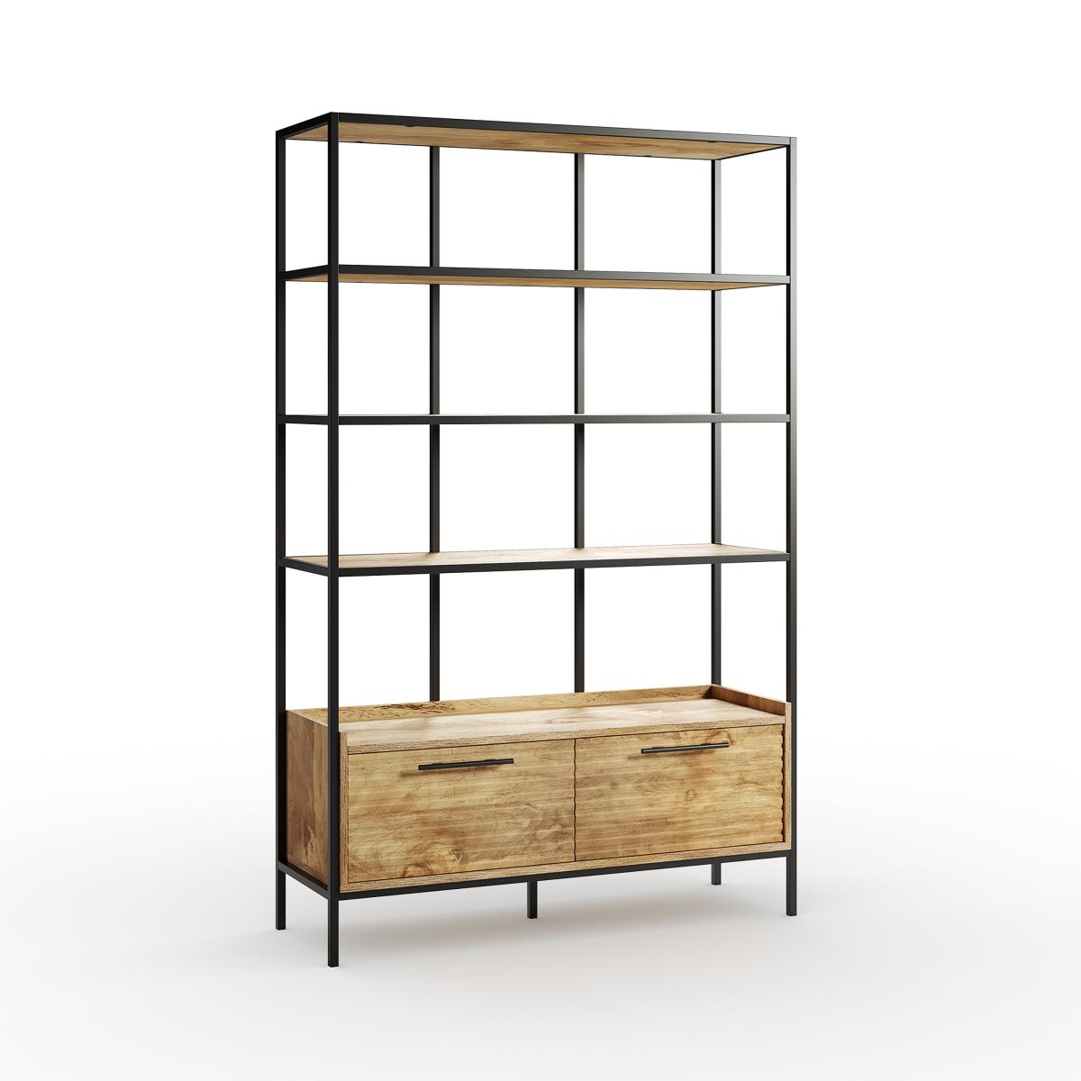 * Wooden Shelving Unit* 4 Large Shelves* Textured Drawer Front With four shelves and two drawers, this unit offers ample storage for displaying decor, books, or storing various items. The textured front of the drawers adds a contemporary touch to its design, while the metal drawer runners ensure smooth and effortless operation. Whether used for showcasing your favorite pieces or storing essentials, this shelving unit provides versatility and a modern aesthetic to any room.