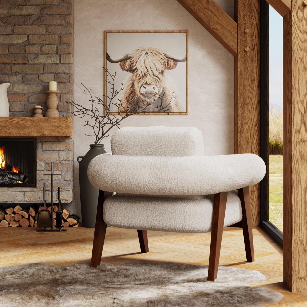 I love this armchair for its versatile and cosy aesthetic - the gentle cream tone makes it easy to blend into a range of interior styles, from modern minimalist to Scandinavian-inspired schemes. Its rounded, plush design adds softness and invites relaxation, making it a practical statement piece. It works especially well in living rooms or reading nooks, paired with textured throws or patterned cushions for visual interest. To style it effectively, consider placing it alongside natural materials like wood or metal accents, and keep surrounding accessories minimal to let its plush form stand out. This chair is a clever choice for adding warmth and comfort without sacrificing style.