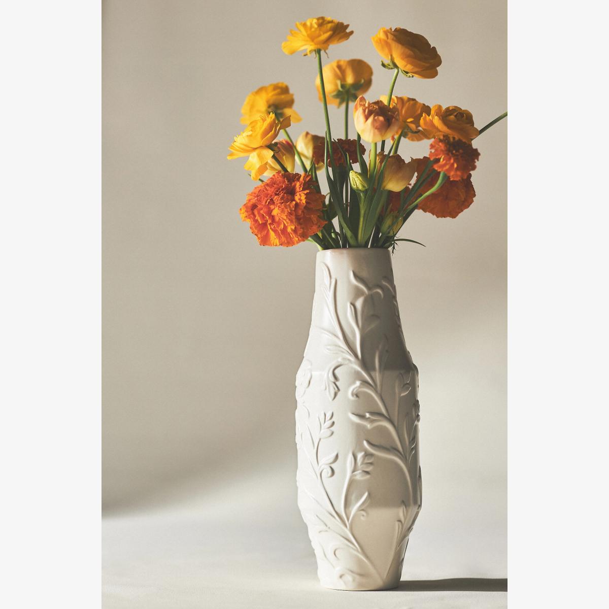 I really like this tall ceramic vase for its clean, sculptural lines and subtle texture, which makes it a versatile statement piece. It works particularly well in neutral or minimalist interiors, bringing a touch of elegance without overpowering the space. You can style it with a simple arrangement of fresh or dried flowers to highlight its design, or leave it empty for a more modern, pared-back look. For practical tips, consider positioning it on a sideboard or console table where it can be appreciated up close, and pairing it with other textured or matte finishes to enhance its visual interest. It’s a great piece to add vertical interest and sophistication to both contemporary and classic interiors.