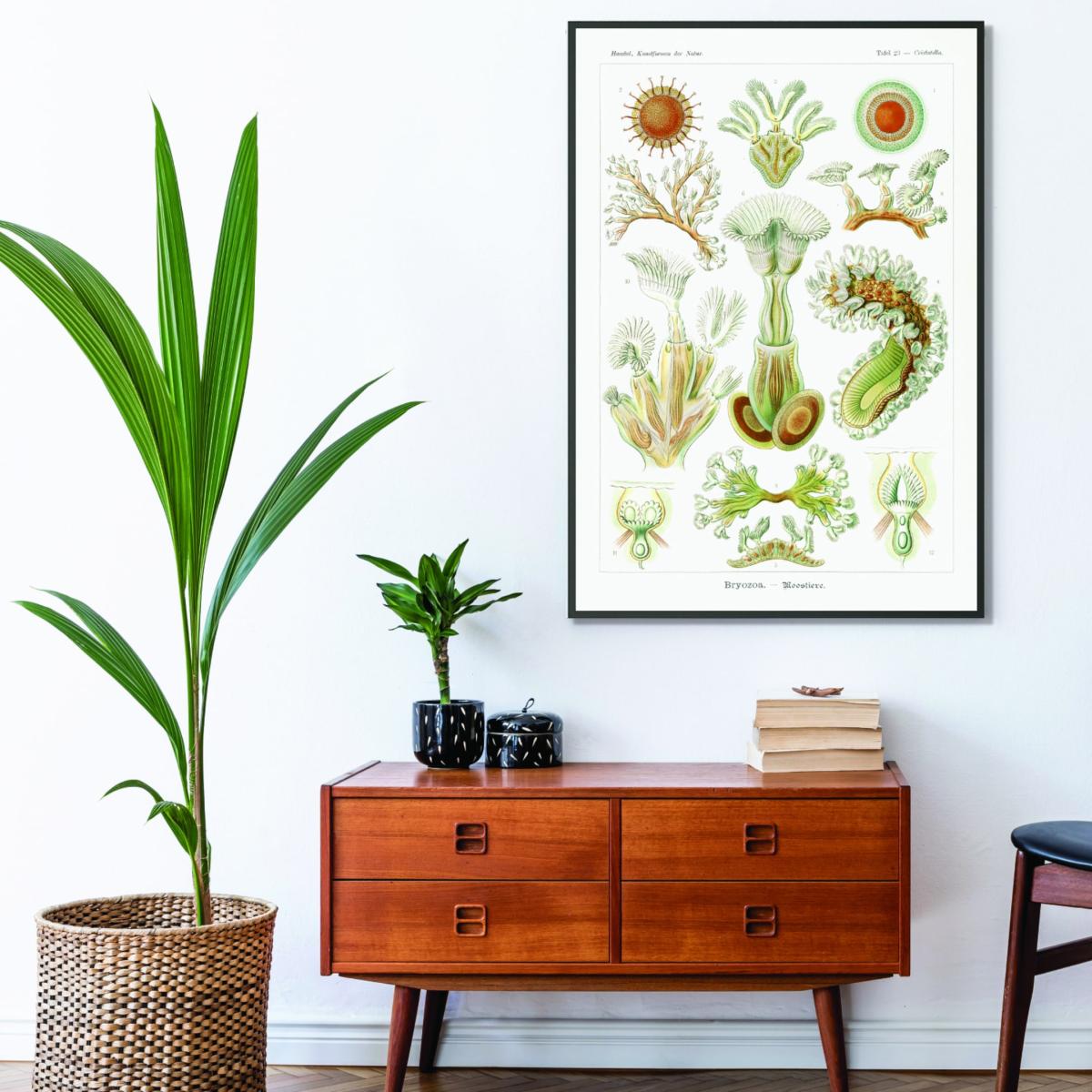 I love this print because it's a striking piece that blends science and art perfectly. It works well in contemporary spaces, especially in minimalist or Scandinavian interiors where its detailed illustrations add interest without overwhelming. It’s also quite versatile and could bring a touch of sophistication to a home office, living room, or even a bathroom. Practical styling tips include framing it in a simple, sleek frame to enhance the scientific illustration’s clarity or grouping it with other natural history prints for an eclectic gallery wall. Given its size, it's ideal as a statement piece above a sofa or console table to draw attention and add a cool, educational vibe to the room.