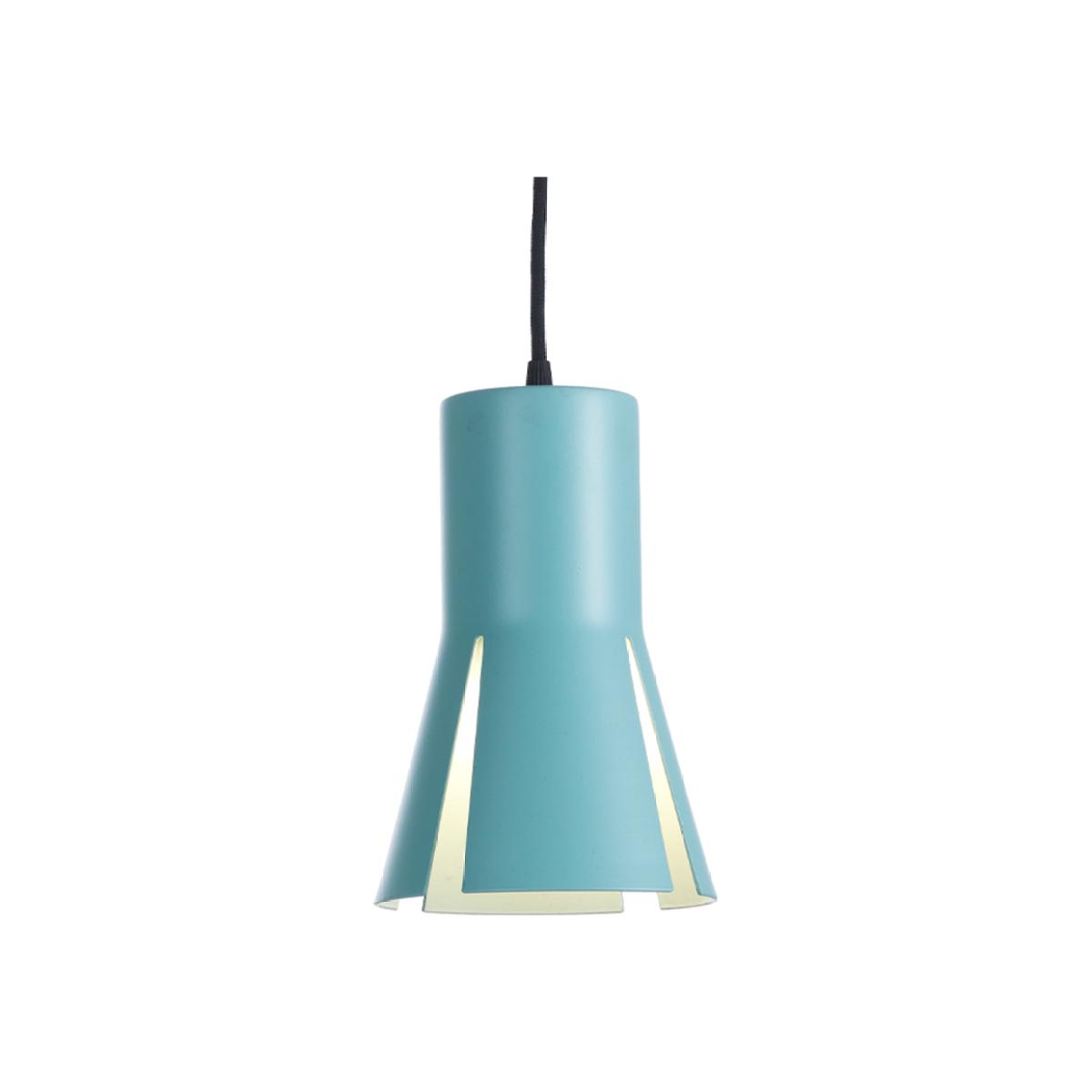 I love this pendant for its clean, modern aesthetic and its bold turquoise colour, which adds a lively touch without overwhelming a space. It works especially well in Scandinavian-inspired interiors or contemporary schemes, where its matte black textile cord provides a subtle contrast and a slightly industrial edge. For styling tips, consider hanging it in clusters of different heights over a kitchen island or dining table, or use it as a statement piece in a minimalistic bedroom. It’s versatile enough to complement both colourful and monochrome spaces, and pairing it with warm metals or natural textures can create a welcoming, cohesive look.