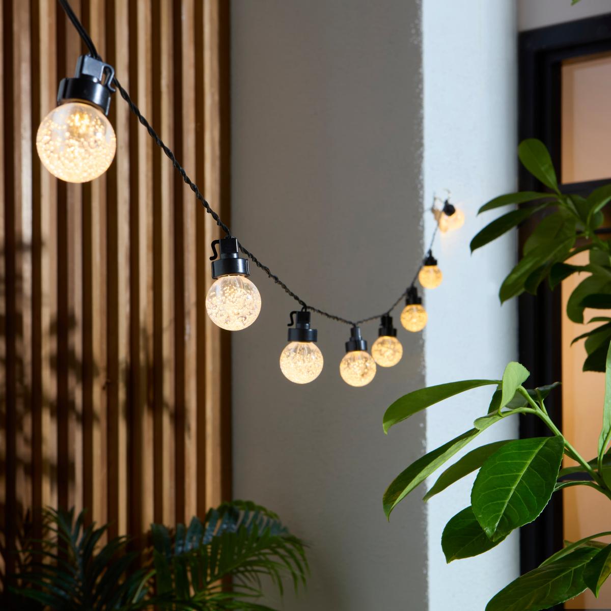 * Unique, Eye-Catching Design * 8 Warm White LEDs * Includes Black Stakes * Suitable for Outdoor Use Add a dash of style to your outdoor space with Bubble 8 LED Indoor Outdoor String Lights. Boasting a gorgeous warm-white bulb colour, this product is hugely versatile and can also be used as stake lights!
