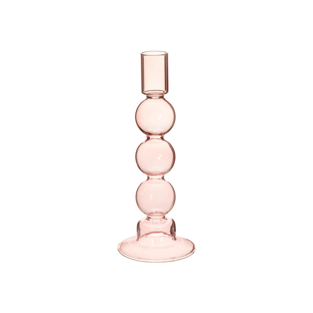 Focusing on the trend of introducing bright colours and glassware to tablescaping. Used to display candlesticks, featuring a pretty pink colourway. Made from glass to create a bubble-like shape