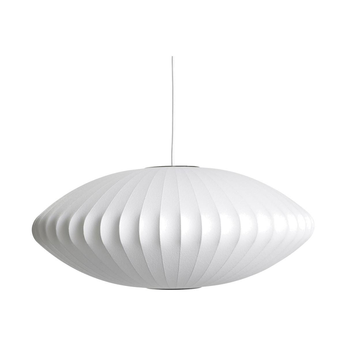 The collection of Bubble ceiling lights was designed in 1952 by Georges Nelson (1908 – 1986), influential designer of the modern movement in the middle of the 20th century in the United States. Georges Nelson created numerous products which are now considered as icons of mid-century modernism. To create the Bubble collection, Nelson took inspiration from Swedish ceiling lights upholstered in silk that he wanted to acquire for his office. He fell completely under the spell of their charming, avant-garde look, but was, however, dissuaded by their price. "The Swedish design consisted of a silk upholstery which was very difficult to manufacture: they had to cut out pleats before sewing them onto a metallic frame. But no matter what, I wanted one at any cost", wrote Nelson. Inventive and bold, Nelson decided to set about manufacturing a lamp by spraying a plastic resin over a steel frame, an innovative technique developed at the time by the American army. In just two days the first prototype was designed. Once the technique was developed, Nelson created a collection of spherical, simple, natural and organic forms. The lampshade of the Bubble pendant consists of a translucent polymer fabric stretched over a fine steel frame. Via the transparency, the frame forms delicate, criss-crossed and vertical patterns. The Bubble ceiling lights adorn the space with their pure and original presence. These evanescent and gentle forms produce a warm and diffuse light. The Bubble pendant marked a revolution in the modernist lighting industry. Bubble represents the spirit of the 50s and the desire to break with the classicism of existing models.