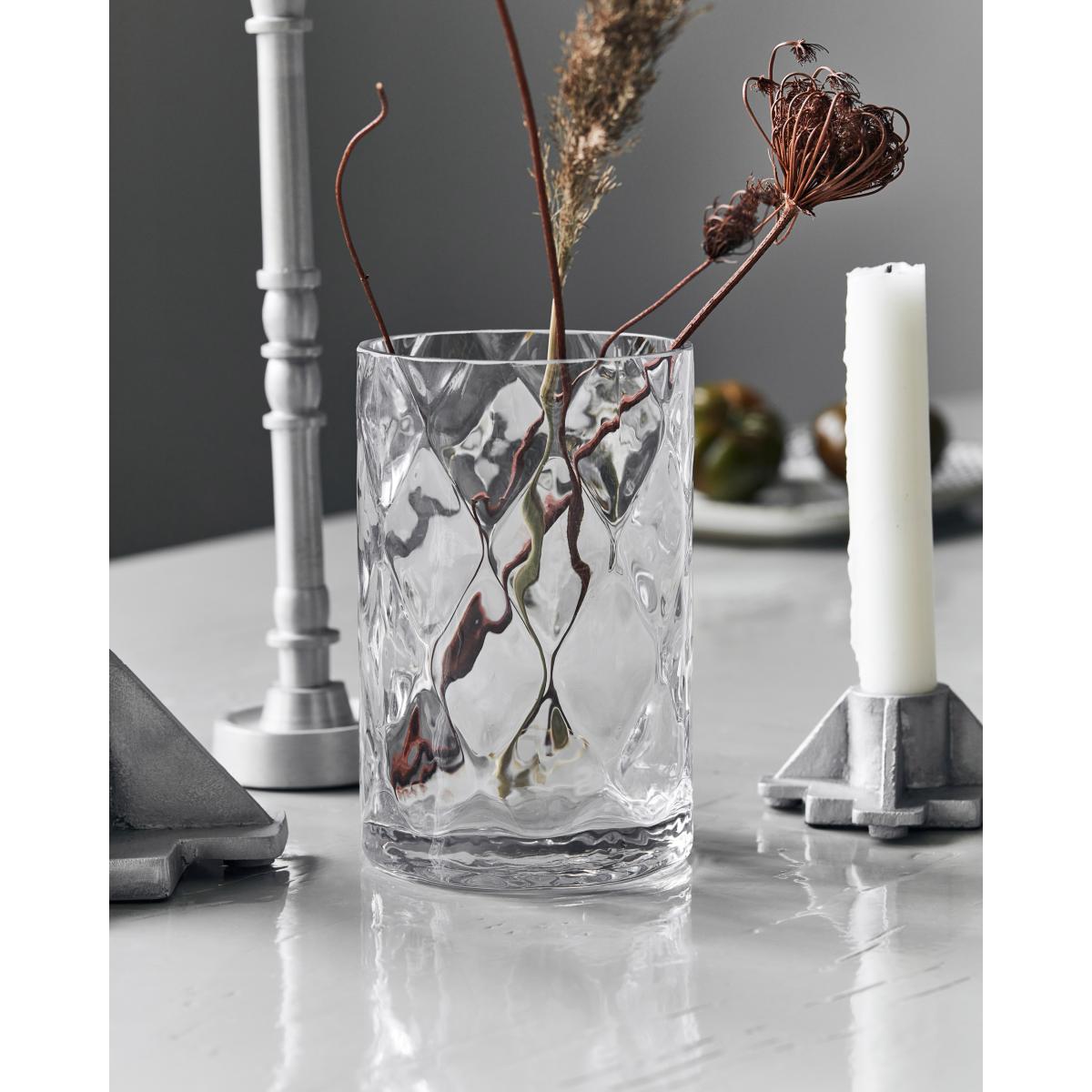 Bubble vase 15 cm from House Doctor is handmade from glass and decorated with an elegant diamond pattern. The cylindrical design of the glass vase is perfect for both flower bouquets and individual twigs and it looks stylish on its own or displayed with candlesticks and other interior design details.