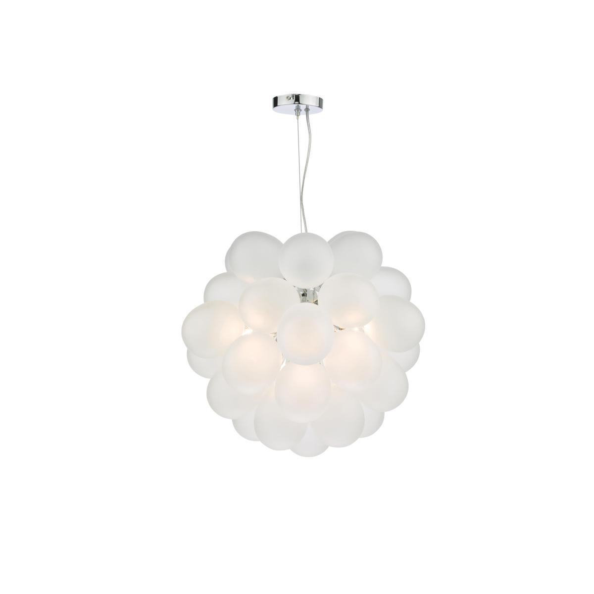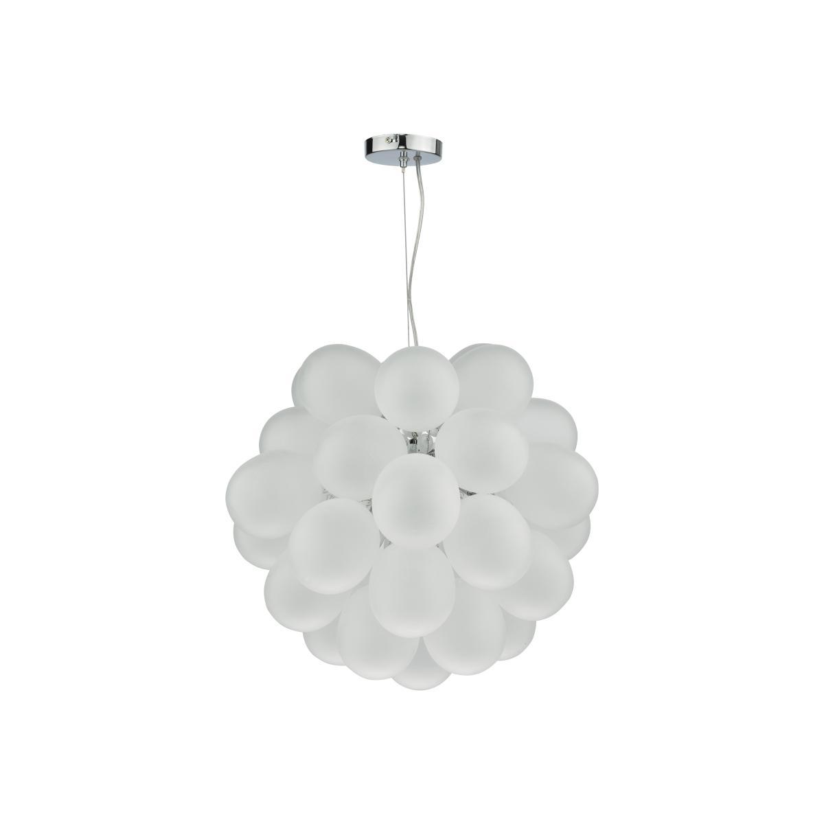 Elevate your home from simple to stunning with the Bubble light pendant. This modern and quirky design is packed with hand-blown glass bubbles that look like clouds. Why you'll love it. Modern and abstract light pendant. Statement light with hand-blown glass orbs. Stunning polished chrome base. Height-adjustable design that fits most ceilings. What you need to know. Made from steel and glass. Dimmable with compatible lamps. G9 bulb type (not included). Dimensions. Height: 40 cm (16 in). Width: 55 cm (22 in).