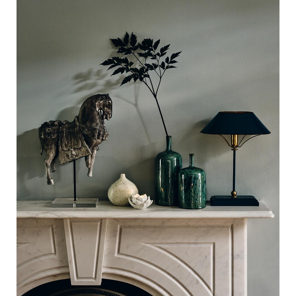 This horse sculpture is a fantastic statement piece, especially due to its striking verdigris finish which lends it a vintage, weathered look. I love it for adding a touch of sculpture-led aesthetic to modern or eclectic interiors, particularly in spaces that embrace natural textures or a slightly industrial vibe. It works well placed on a mantelpiece, console table, or even as a standalone centrepiece on a sideboard. To style it effectively, consider pairing with softer textiles or contemporary ceramics to create contrast or using it alongside other antique-inspired objects for a curated look. Its commanding silhouette makes it ideal for bringing personality and an earthy tone to both living rooms and hallways.