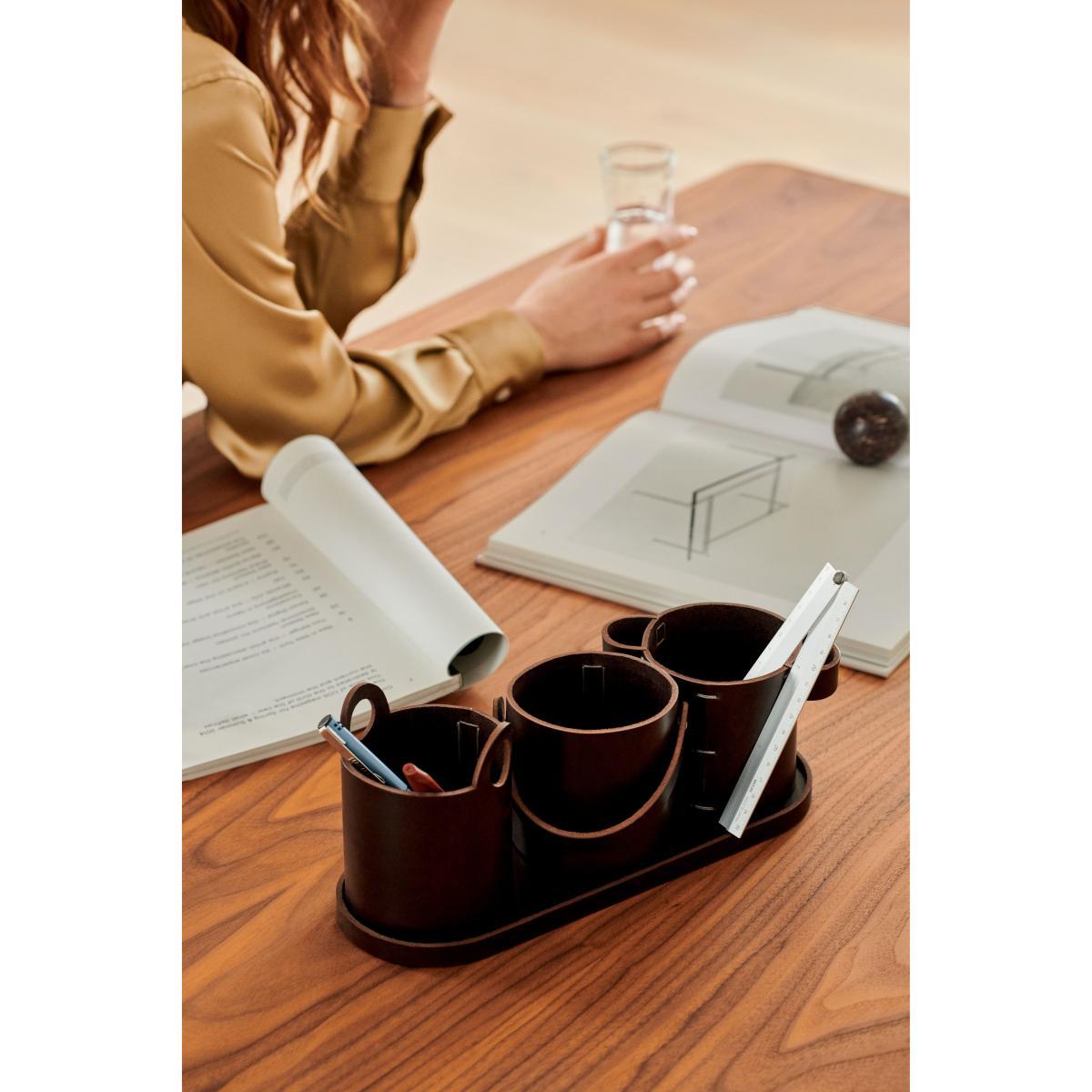 Buckets Desk organizer - / Leather by Fritz Hansen Brown
