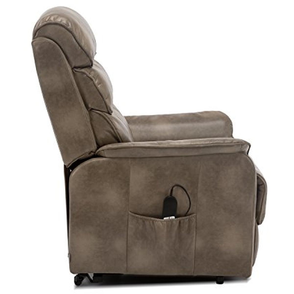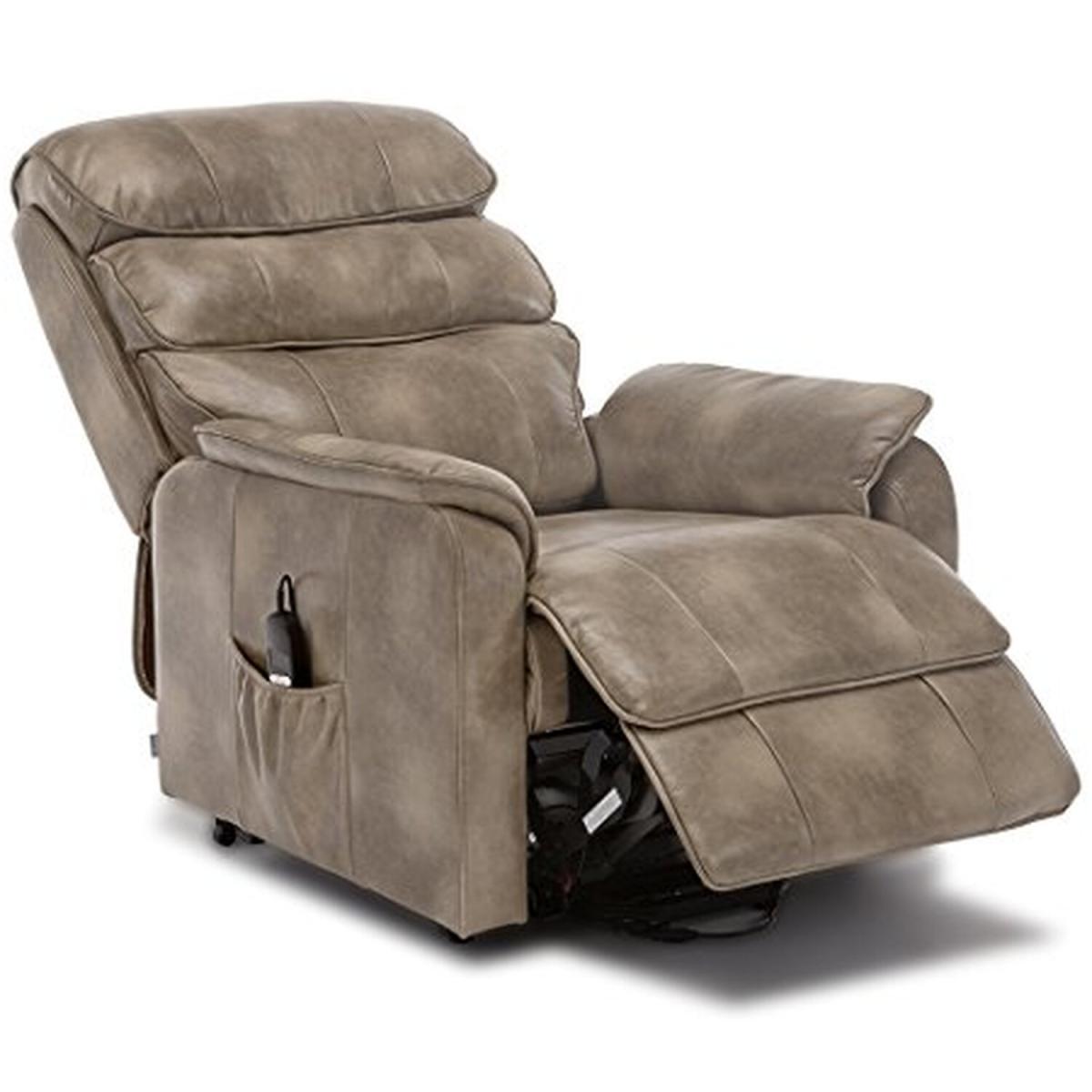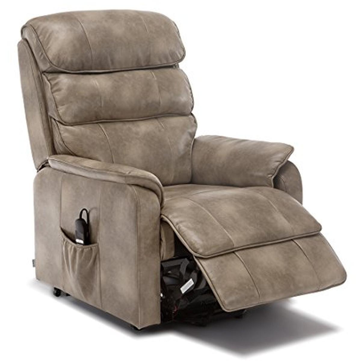 Buckingham Electric Rise Recliner Chair The Buckingham Riser Recliner Chair features a single motor mechanism and has been designed for ease of use. The simple to operate, two button handset allows you to either rise or recline your chair at the touch of a button. The rise function will enable you to raise the chair to an almost standing position, making ideal for those who require assistance when transferring to or from the chair. Whilst the recline function allows you to adjust the chair to a comfortable snooze position for ultimate relaxation. The Buckingham triple padded backrest allows ultimate comfort and has been finished in Leather Air upholstery for a modern and stylish appearance. In addition to its attractive appearance the Leather Air upholstery is breathable and warm to the touch as this is a fabric and contains no animal products it also provides a convenient wipe clean and durable surface. br All of our Recliners are supplied in two separate sections, the base and the backrest. This allows easy removal from the box and transport within the home, navigating doorways and staircases. Once situated, the backrest simply clips into the rear section of the base to allow instant relaxation and comfort in your new chair.