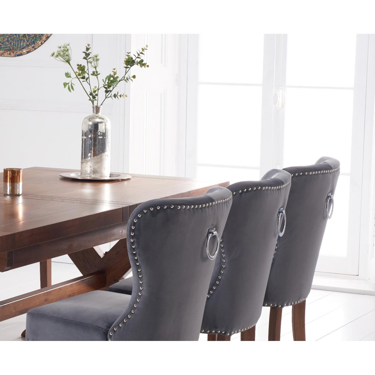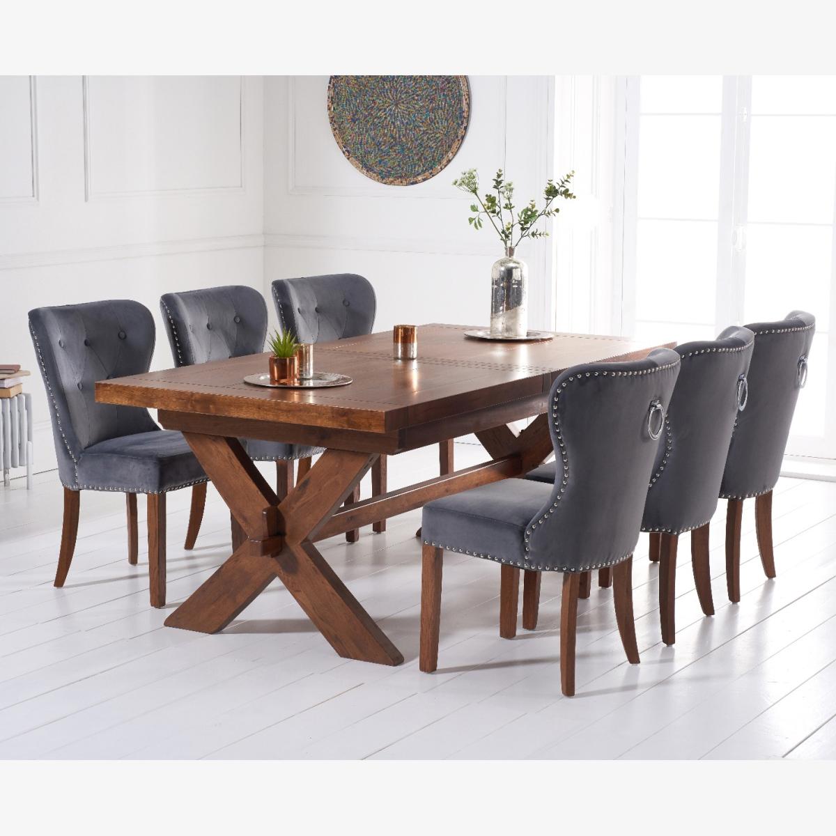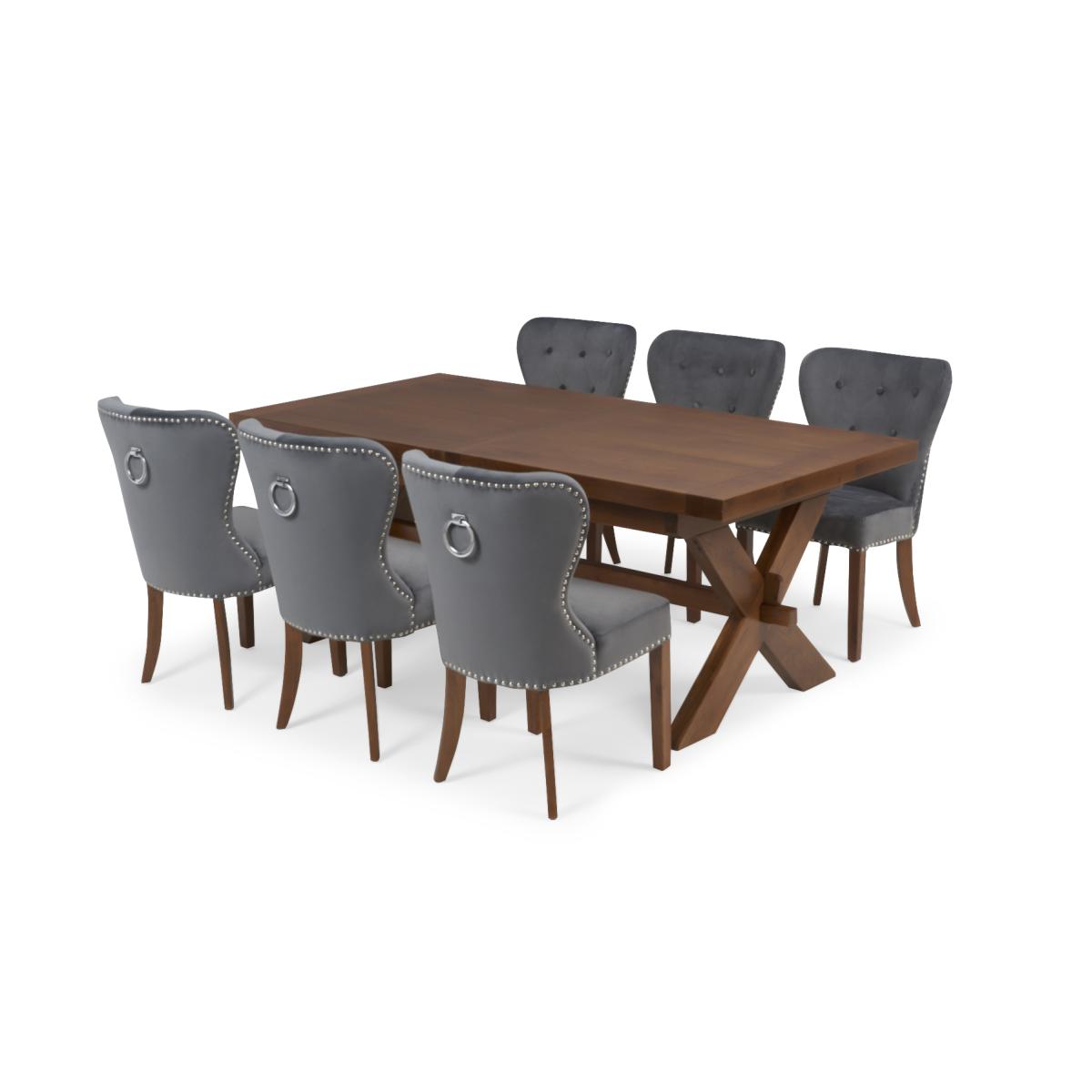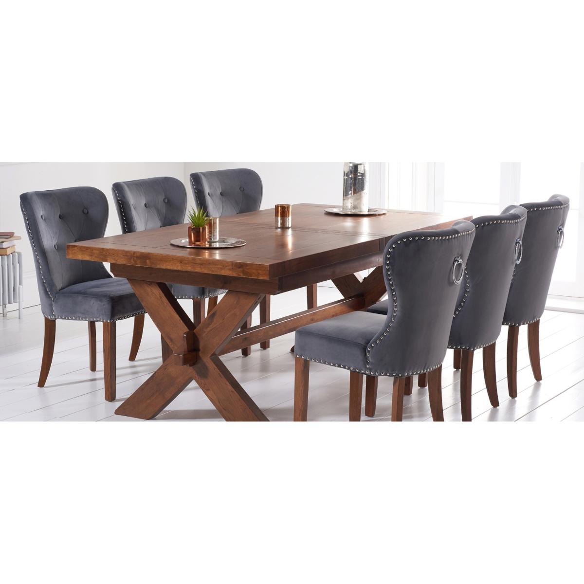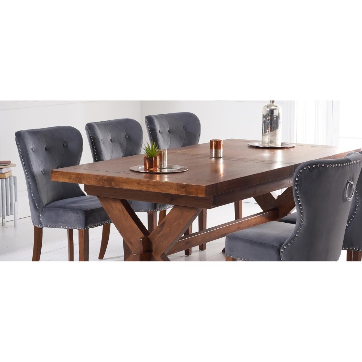 Buckley 200cm Dark Solid Oak Extending Dining Table with 6 Grey Keswick Velvet Chairs