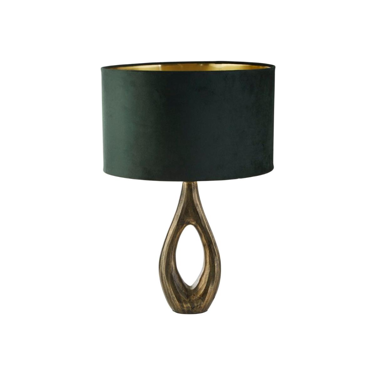 The Bucklow Table Lamp is a perfect blend of style and functionality. This stunning lamp features a sleek and sturdy base constructed in antique brass with a 40cm green velvet shade with gold inner, ensuring both durability and a touch of elegance. The lamp comes with an opulent green velvet shade, adding a touch of sophistication and refinement to the overall design. The drum-shaped shade further enhances the lamp's visual appeal, exuding a sense of balance and symmetry. The colour combination brings depth and elegance to the lamp, creating a warm and inviting atmosphere in any space. The lamp base is adorned with a captivating design element—a circular cutout in the centre. This unique feature adds a modern and sophisticated touch to the lamp, creating a visual focal point that catches the eye. The circular cutout serves as an alluring detail, enhancing the overall aesthetic appeal of the base. The Bucklow Table Lamp is a perfect blend of style and functionality. This stunning lamp features a sleek and sturdy base constructed in antique brass with a 40cm green velvet shade with gold inner, ensuring both durability and a touch of elegance. The lamp comes with an opulent green velvet shade, adding a touch of sophistication and refinement to the overall design. The drum-shaped shade further enhances the lamp's visual appeal, exuding a sense of balance and symmetry. The colour combination brings depth and elegance to the lamp, creating a warm and inviting atmosphere in any space. The lamp base is adorned with a captivating design element—a circular cutout in the centre. This unique feature adds a modern and sophisticated touch to the lamp, creating a visual focal point that catches the eye. The circular cutout serves as an alluring detail, enhancing the overall aesthetic appeal of the base.