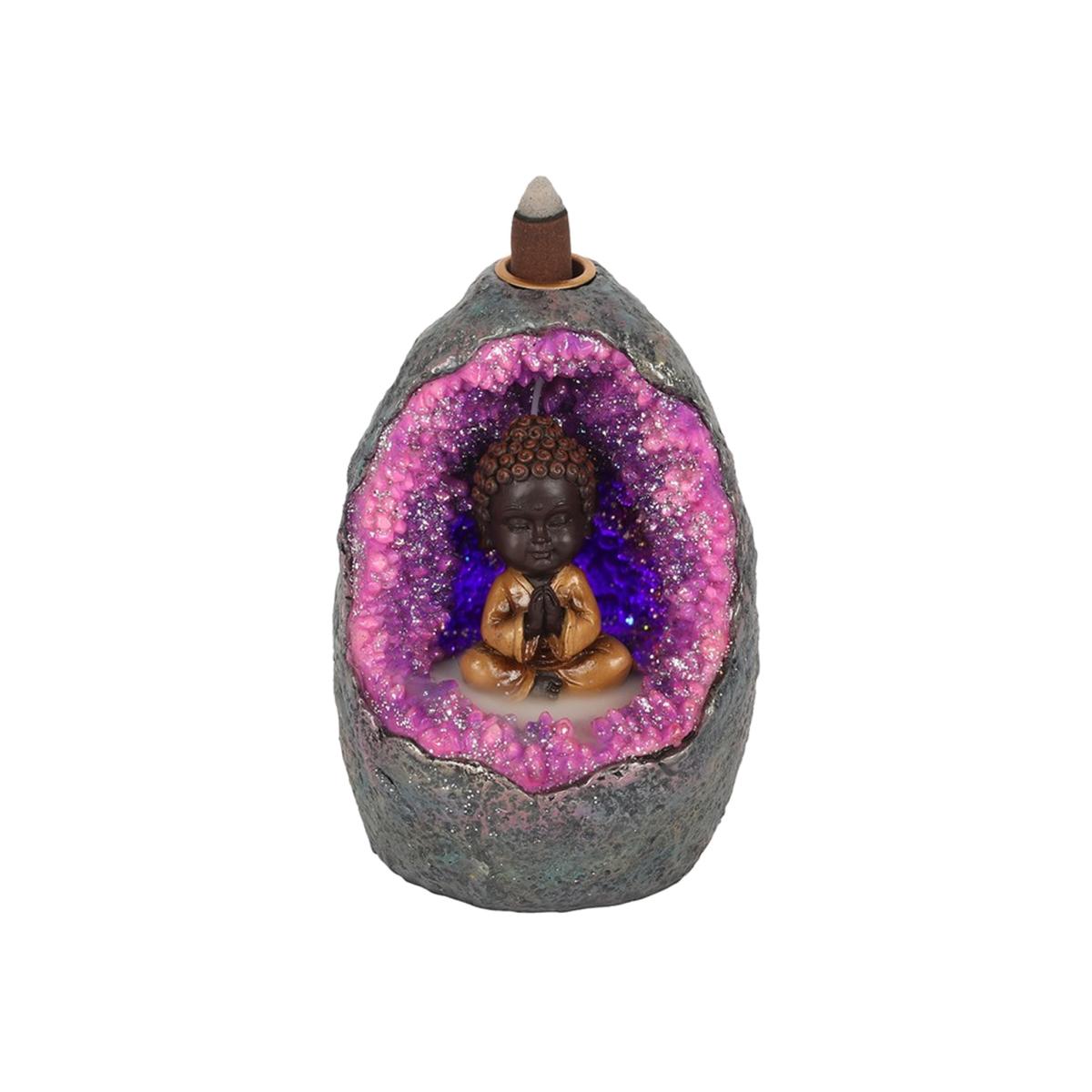 Buddha Crystal Cave LED Backflow Incense Burner with Color Changing Light - Multicolour