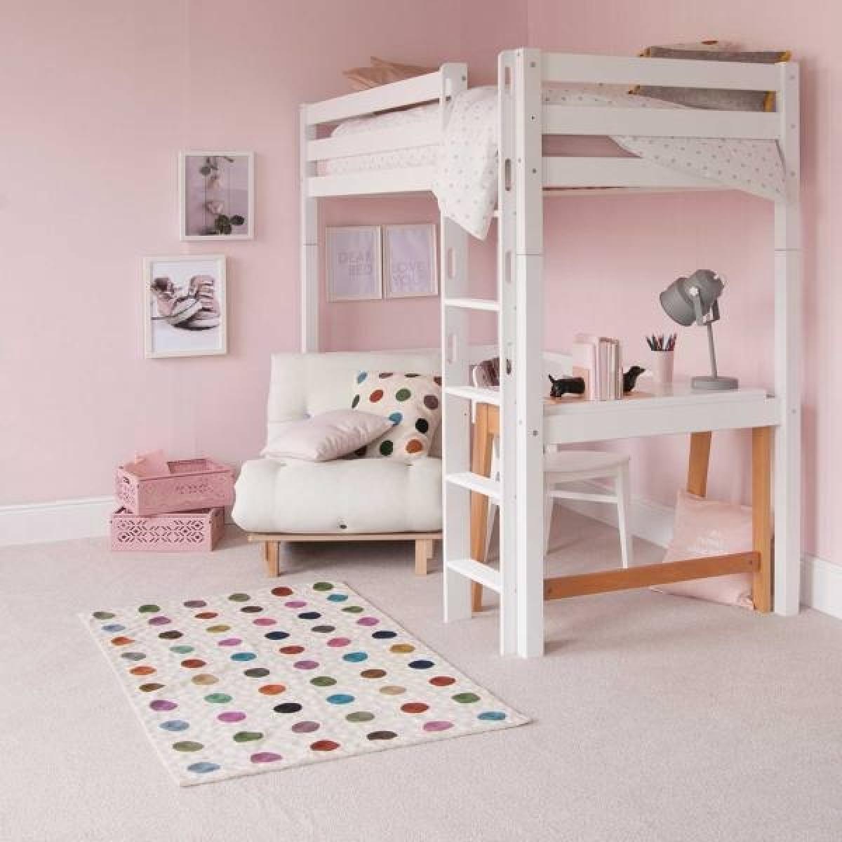 Design. Buddy Childrens Beech Highsleeper Loft Bed With Desk and Futon Chair Bed. Create a fun and inviting atmosphere with the Buddy Childrens Beech Highsleeper Loft Bed with Desk and Futon Chair Bed. Great for learning, playing and for providing extra sleeping space at sleepovers. The Futon Chair Bed is a comfortable and practical addition to your childs bedroom. Available in a range of fabric colours, there’s something to suit everyone with the Buddy Beech Highsleeper.