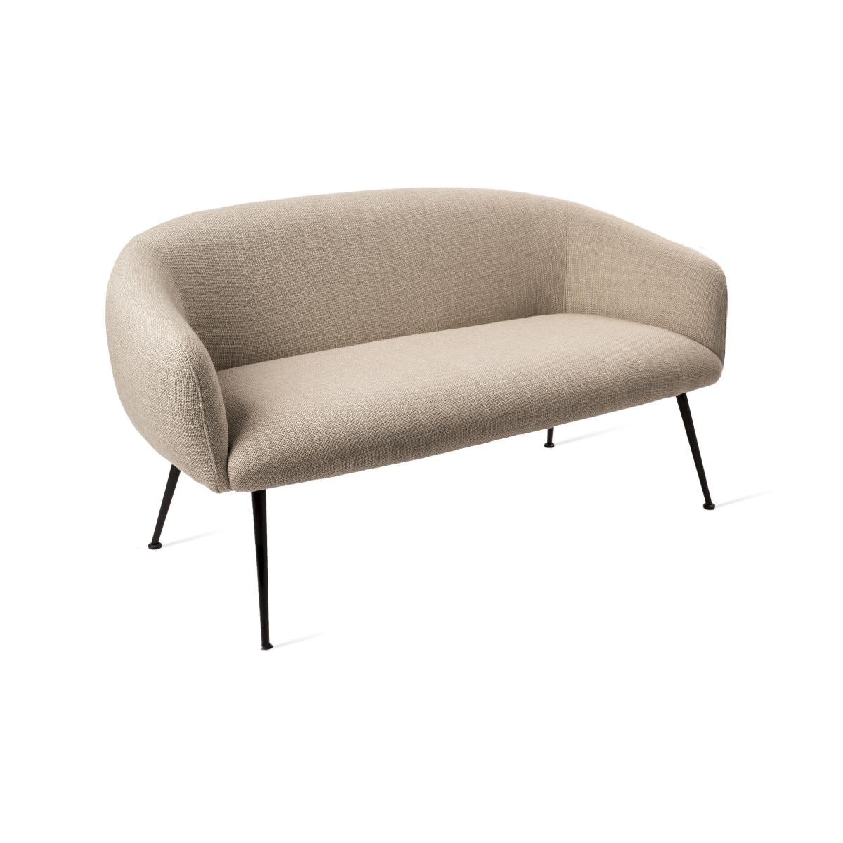 With its slender metal base and inviting curves, the Buddy sofa is inspired by fifties' elegance. The large padded seat is upholstered with elegant fabric. This versatile 2-seater sofa in a compact size is ideal for tight spaces. It fits into any space: house, office, business use. Its simple appearance lets it blend harmoniously into our daily lives without upsetting our visual environment. It is ideal as an end sofa or to create a relaxation area in any room in the house: a bedroom, entrance or dressing room.