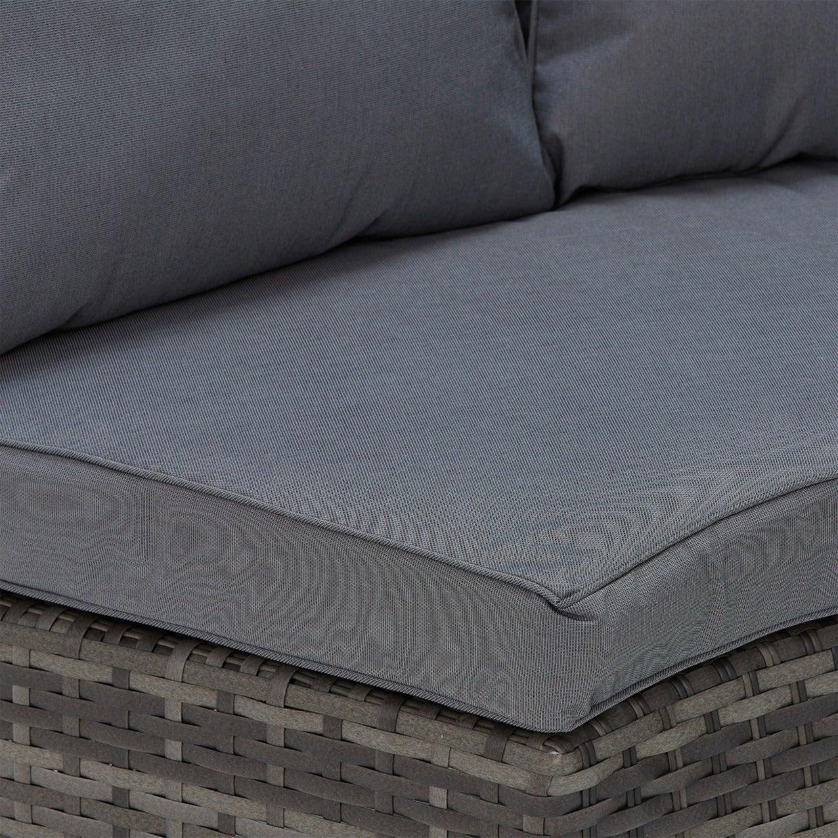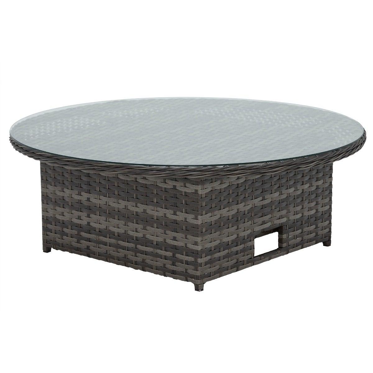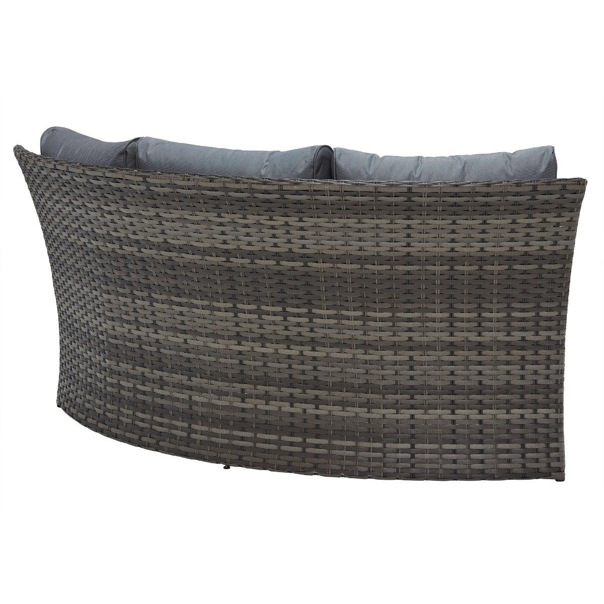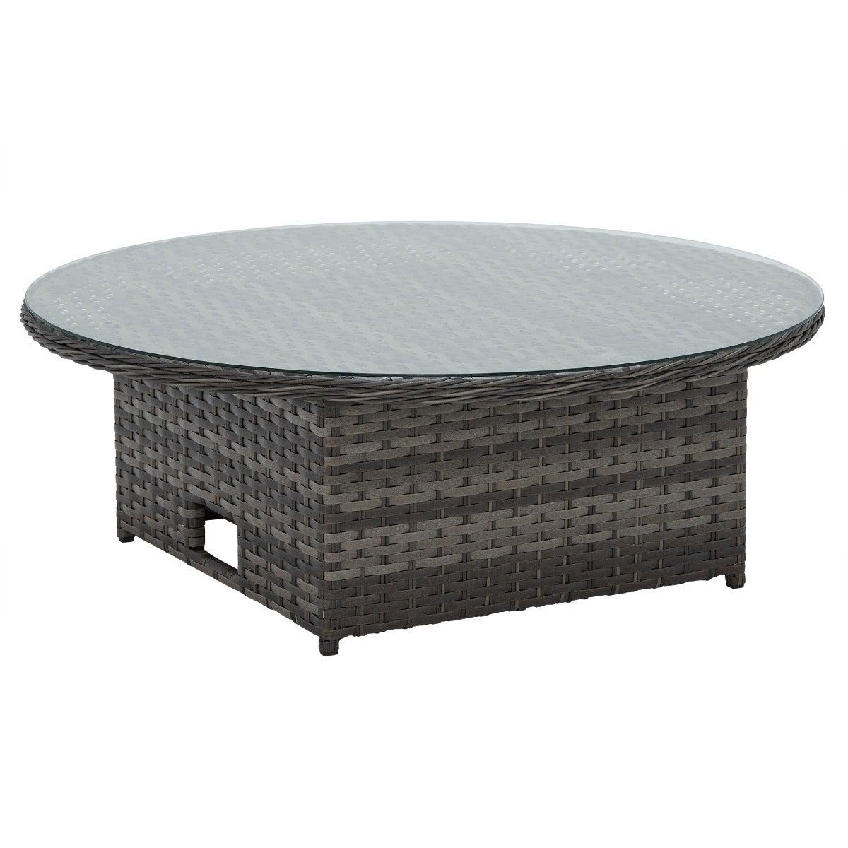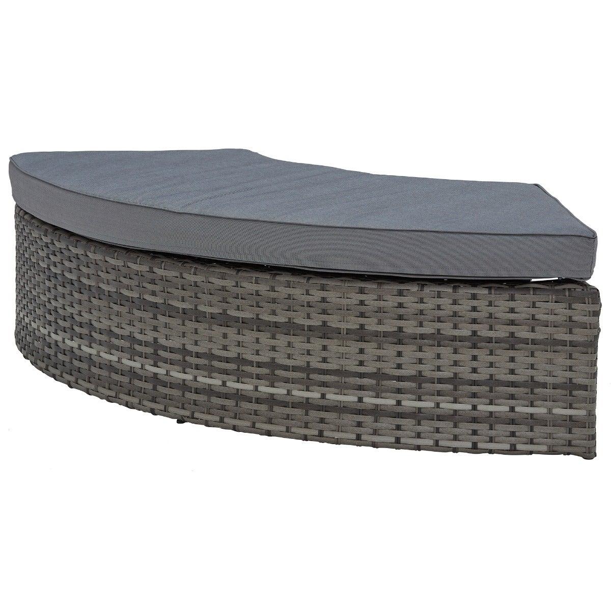 Design. If al fresco entertaining is your forte the Bude Garden Dining Set with Rising Table is exactly what your outdoor space calls for. The soft grey cushions set atop quality weatherproof rattan produces a practical yet stylish combination. The circular, modern design of the Bude Garden Dining Set creates quite the statement, transforming from a huge daybed and the perfect afternoon spot for reading, into a dining set with enough seating for all your family and friends, plus revealing a handy table ready to hold your cold drinks.