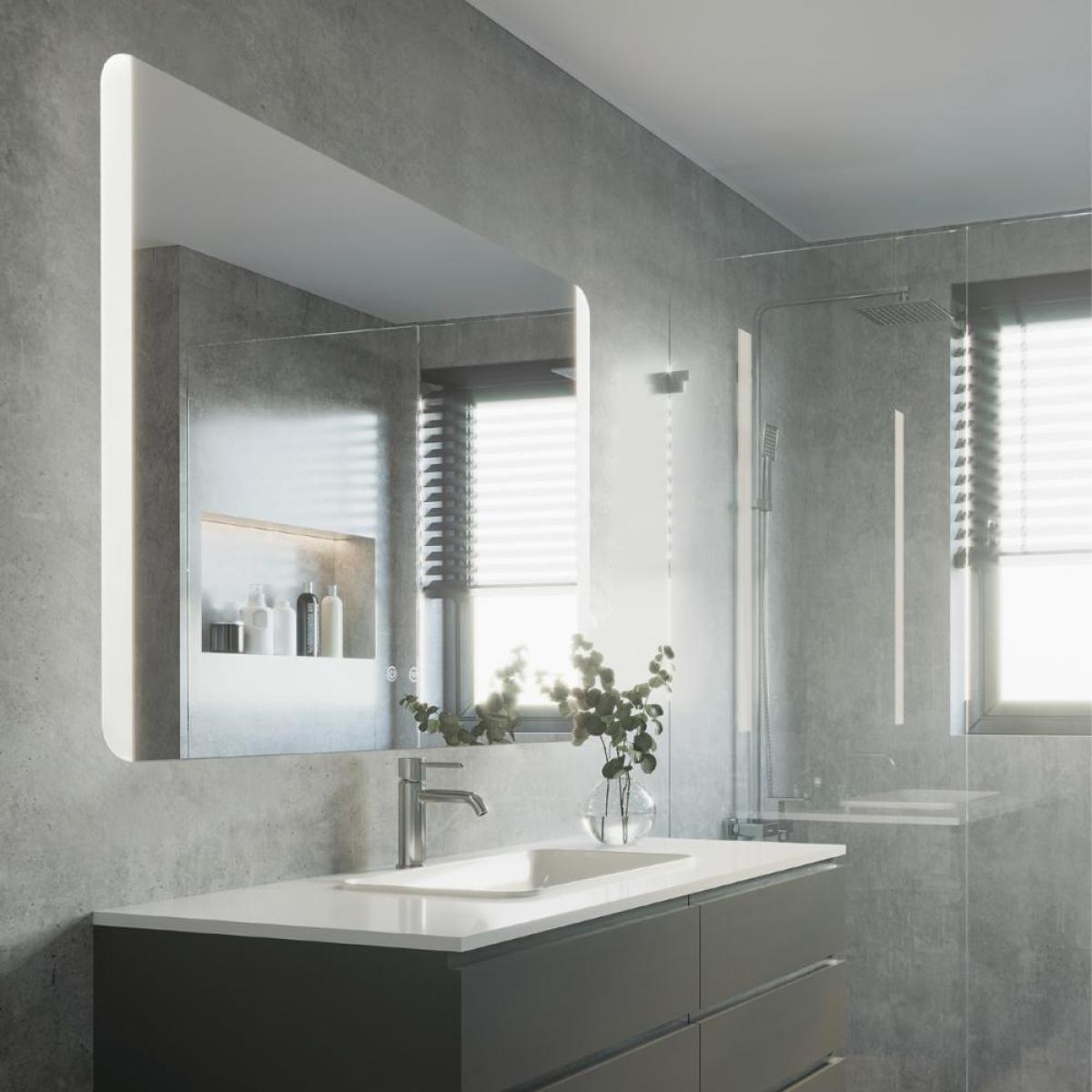 An essential accessory for modern bathrooms, this 80 cm wide LED illuminated mirror is an essential accessory. With the touch switch on the bottom of the mirror, you can also choose between 3 color temperatures. A touch dehumidifier function can also be activated, which prevents condensation from condensing on the surface of the mirror, so the mirror can be used in its full function immediately after showering, without wiping.